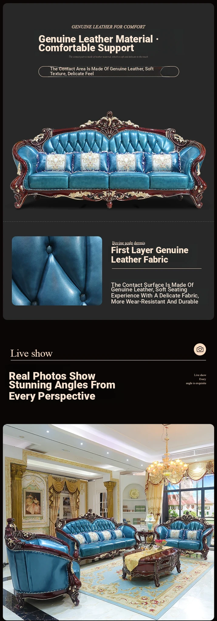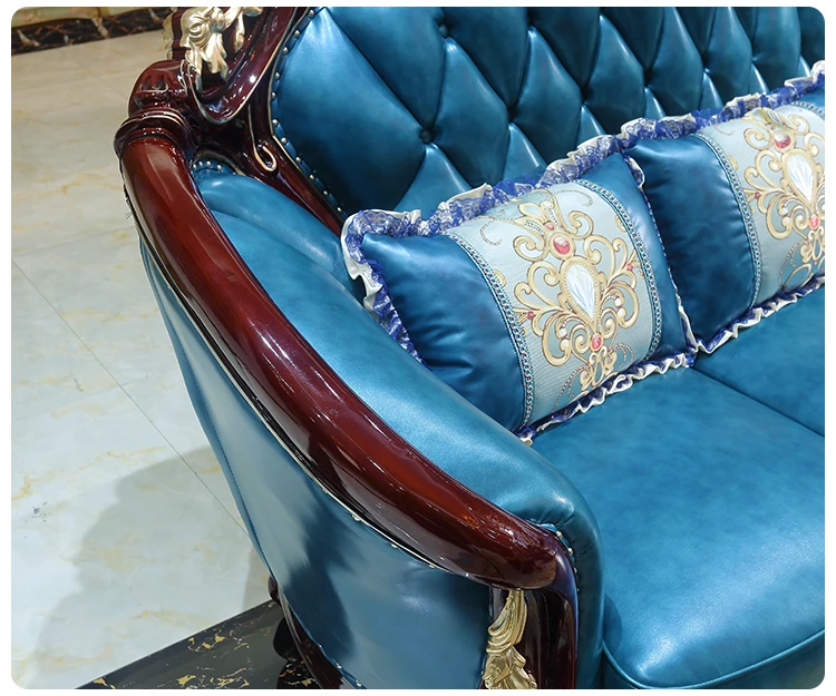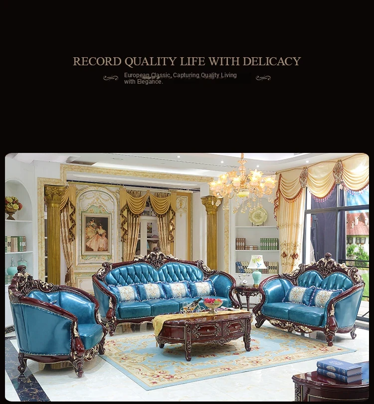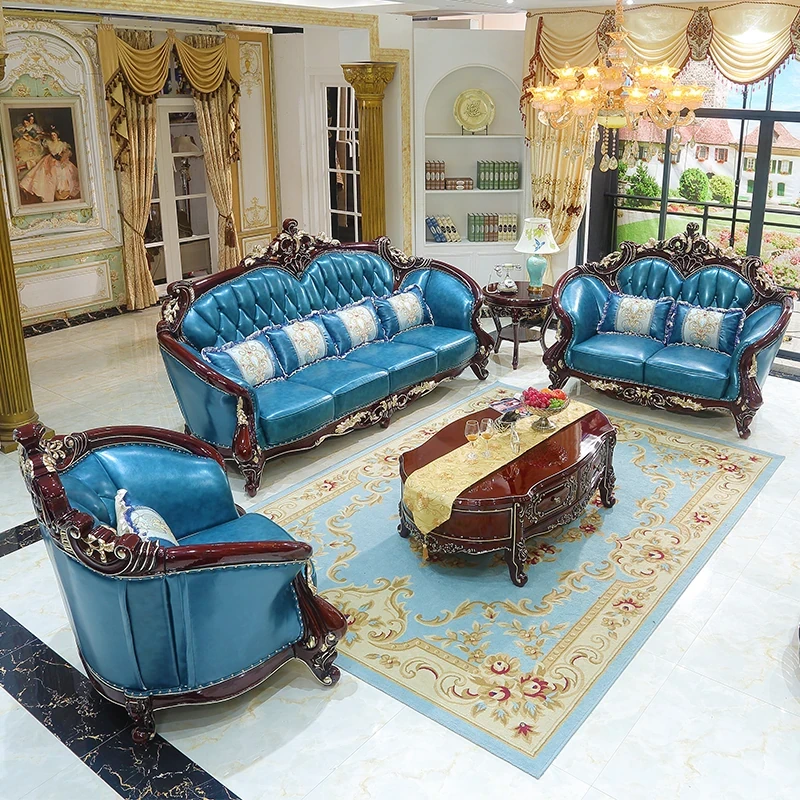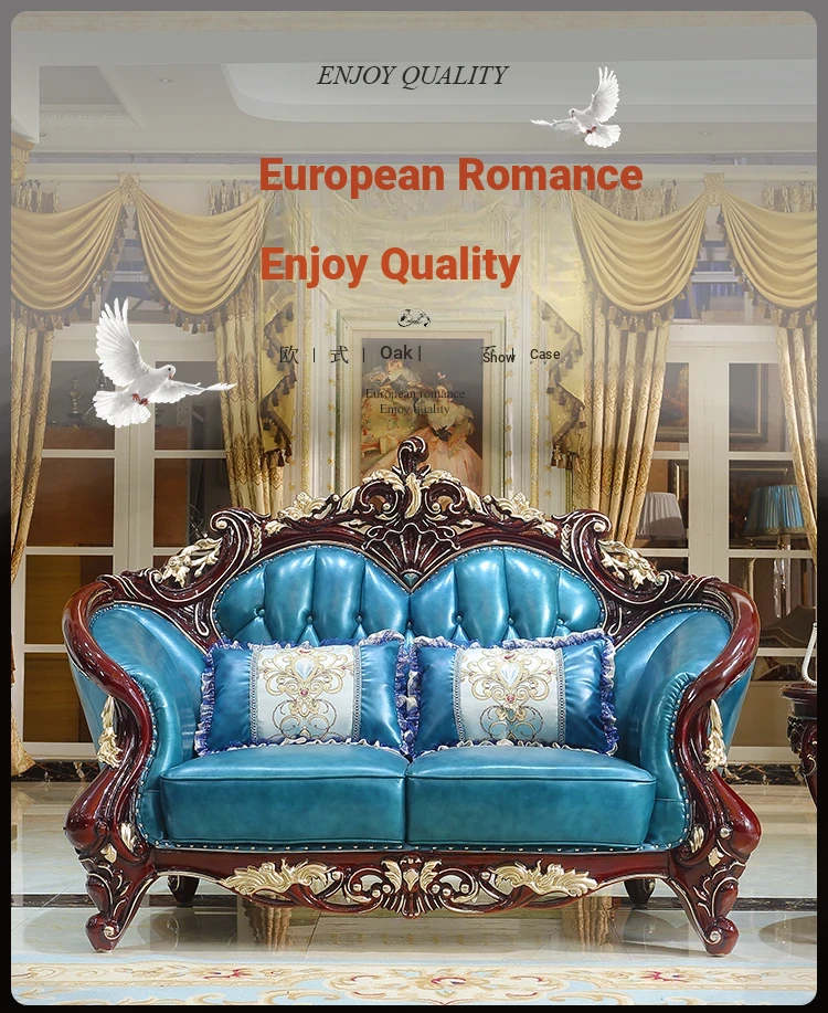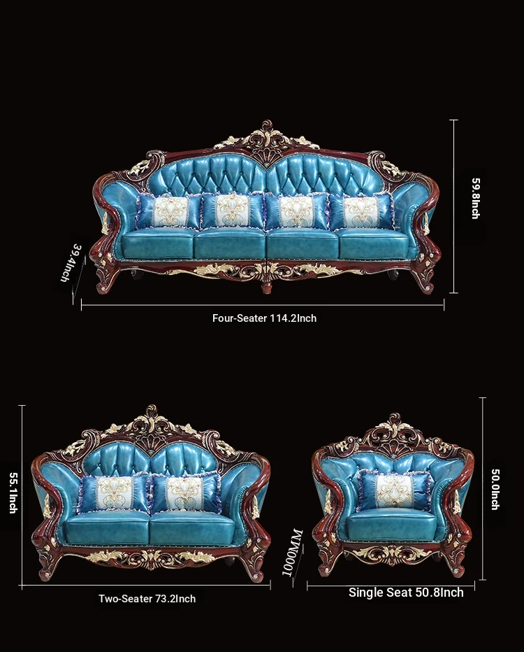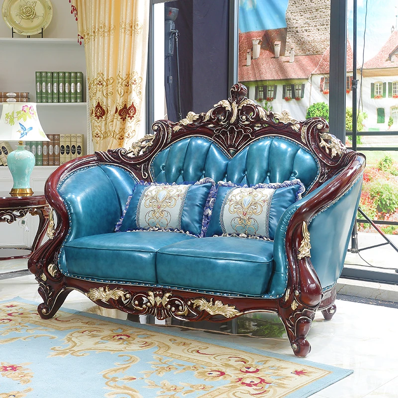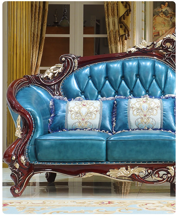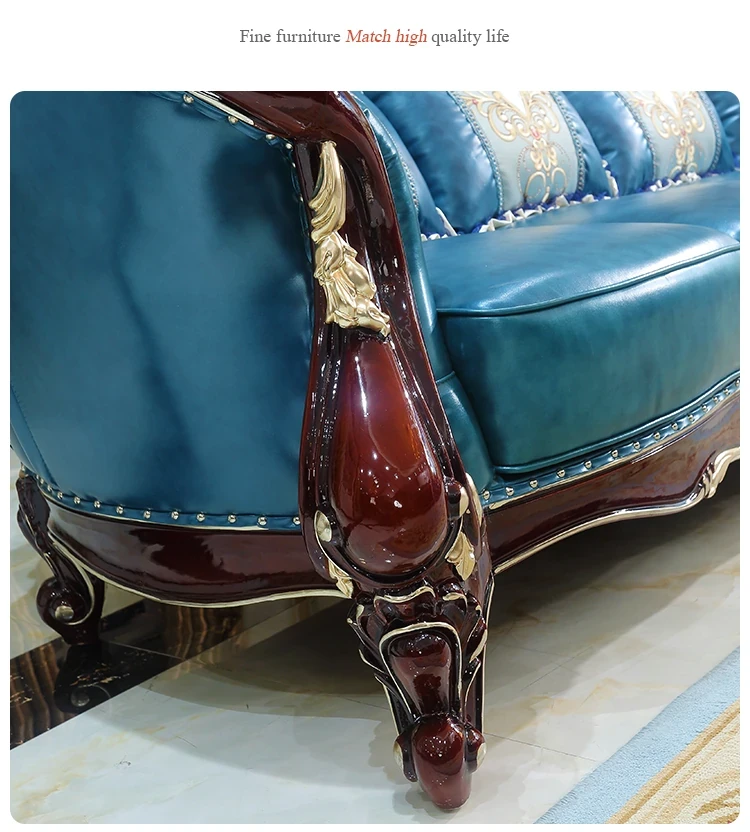 Luxurious European Style Genuine Leather Sofa Set - Hand-Carved Solid Wood Design in Rich Red Sandalwood Color, Perfect for Villa Living Rooms - Complete Range of Elegant Home Furniture
