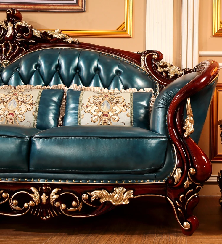 Luxurious European Style Sofa Set - American Rosewood with Gold Accents, Exquisite New Classical Design, Hand-Carved Solid Wood, Perfect for Elegant Villas and Upscale Interiors.