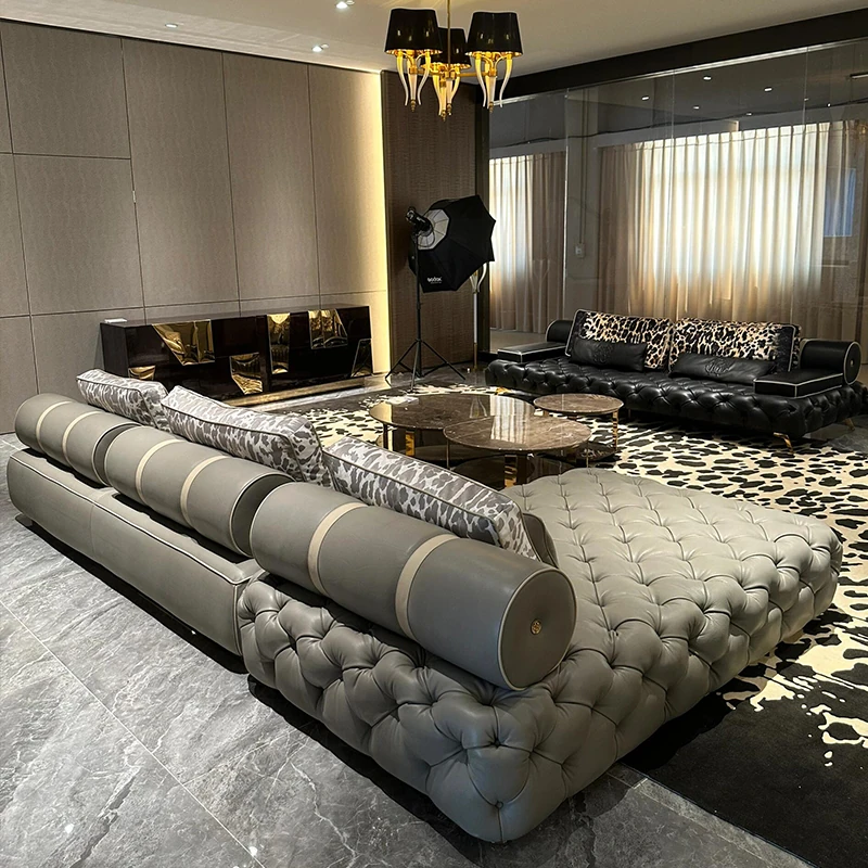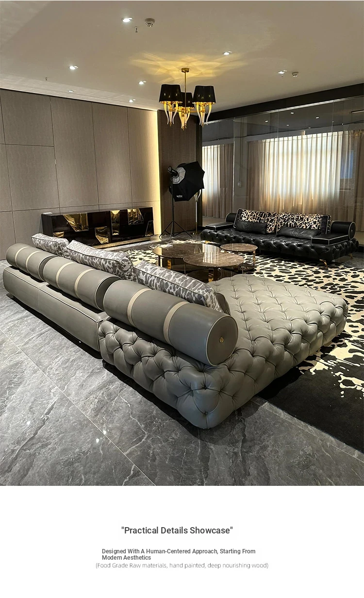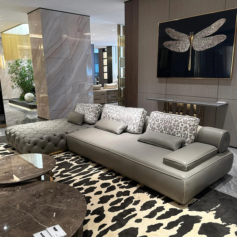 Luxurious Italian Corner Sofa - L-Shaped Genuine Leather for Villas and Elegant Living Rooms | Chic Design Inspired by Xiaohongshu