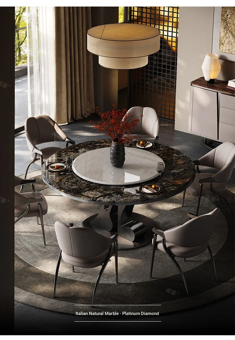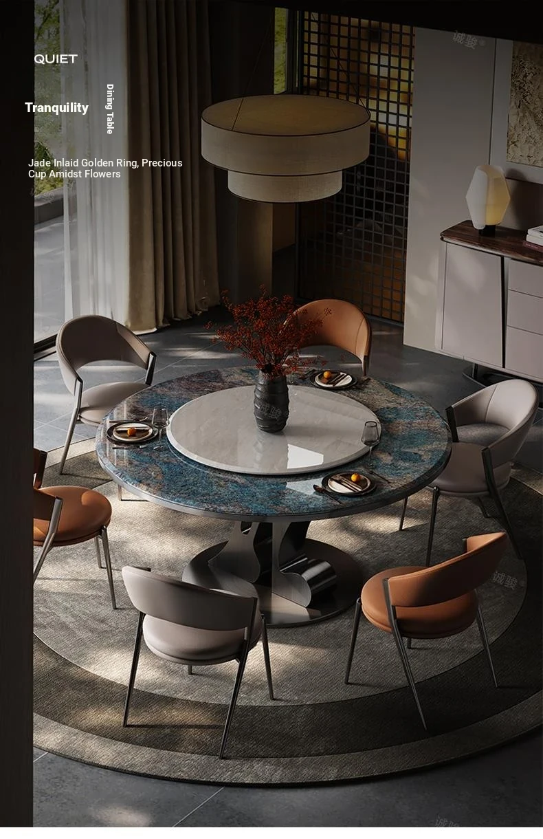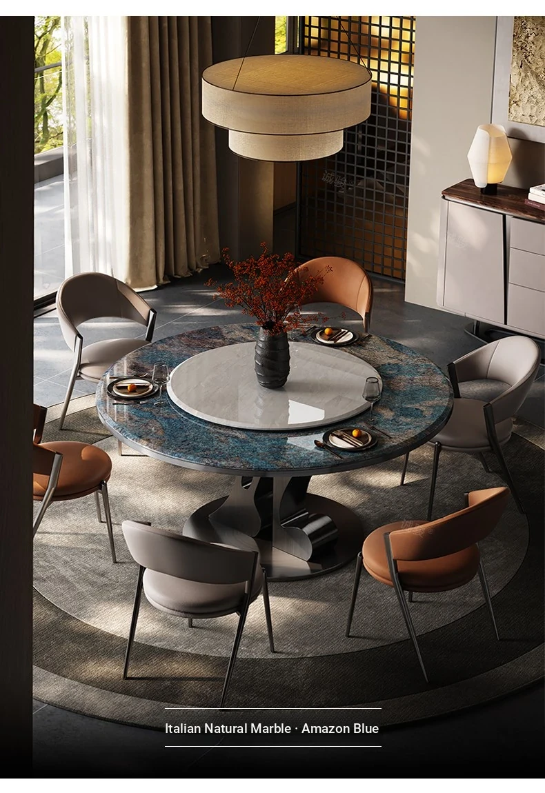 [Amazon Blue/Grey Titanium] 51.18 in Dining Table + Cary Icejade Turntable + Dining Chair * 6