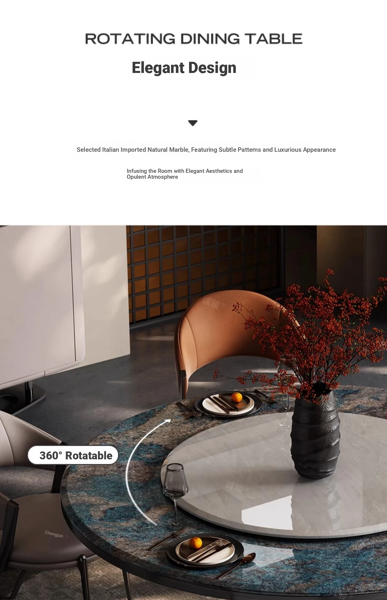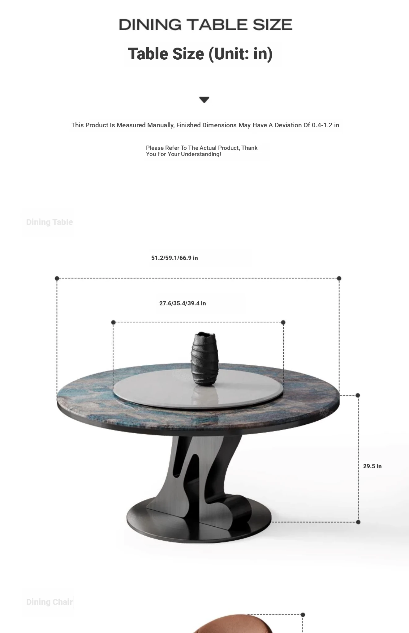 [Amazon Blue/Grey Titanium] 51.18 in Dining Table + Cary Icejade Turntable