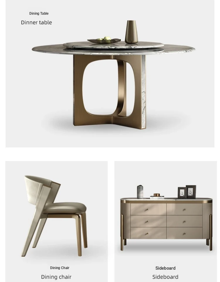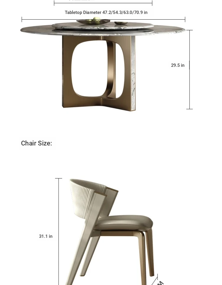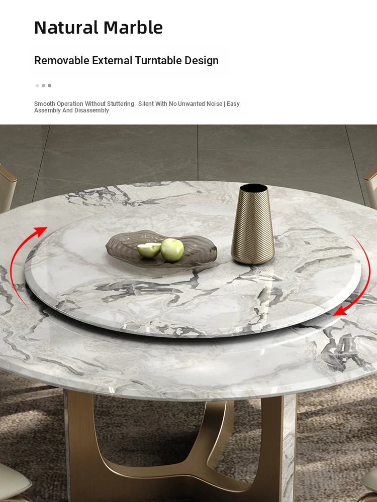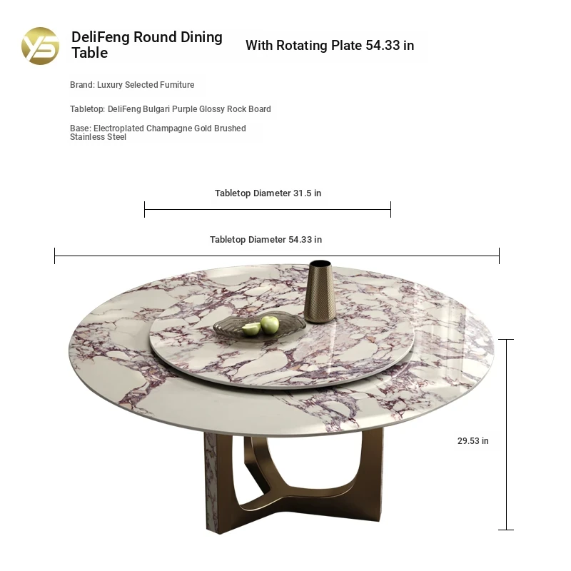 Delifeng rock plate round dining table [with turntable 54.33in]]