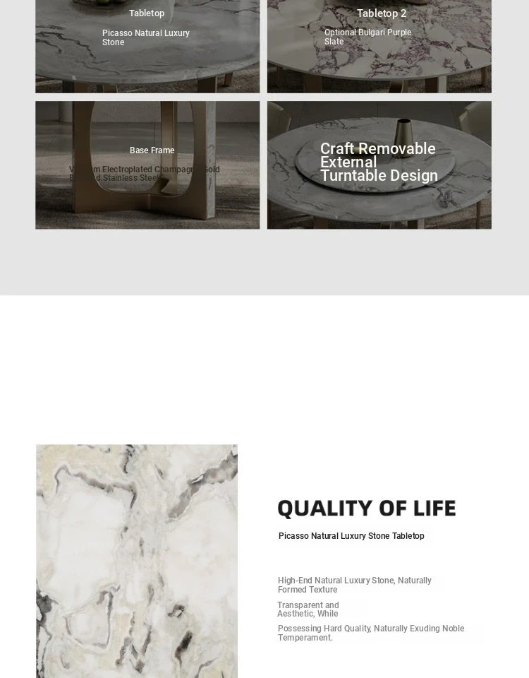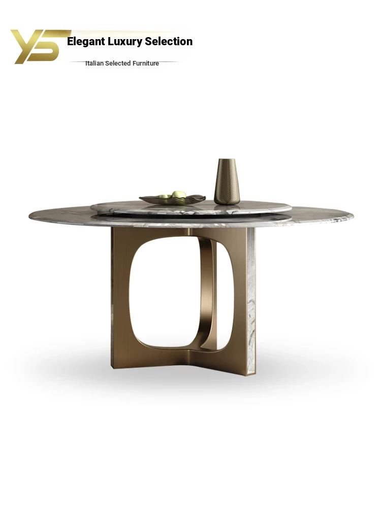 Natural luxury stone round dining table [with turntable 70.87in]]