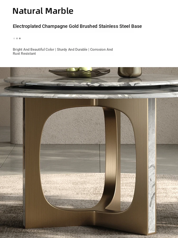 Natural luxury stone round dining table [with turntable 54.33in]]