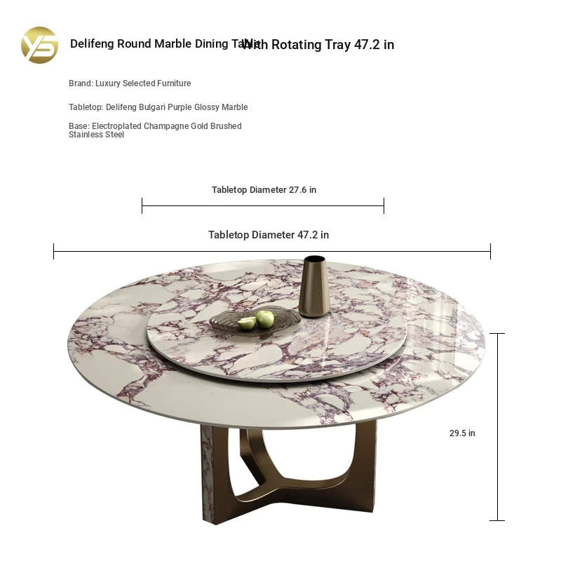 Delifeng rock plate round dining table [with turntable 47.24in]]