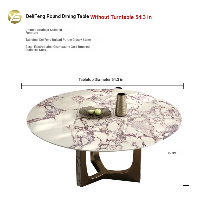 Delifeng Rock Plate Round Dining Table [54.33in Without Turntable]]