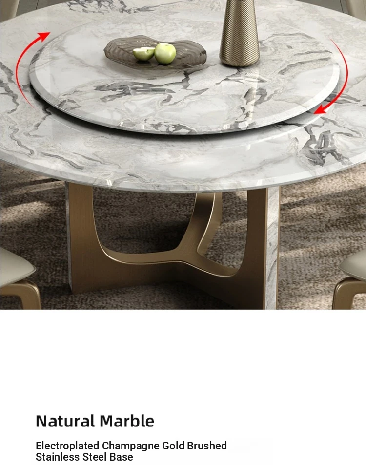 Natural luxury stone round dining table [with turntable 62.99in]]