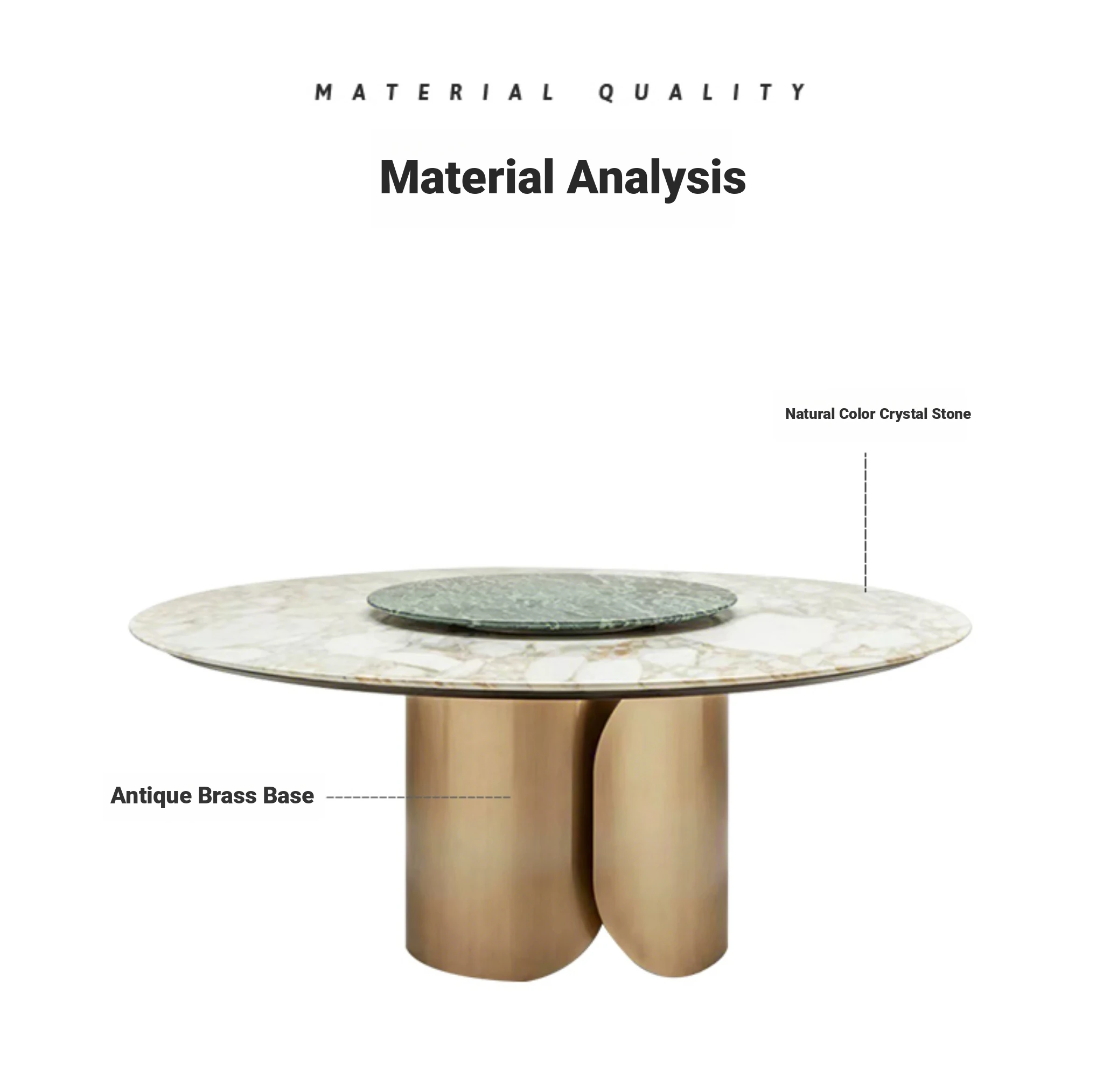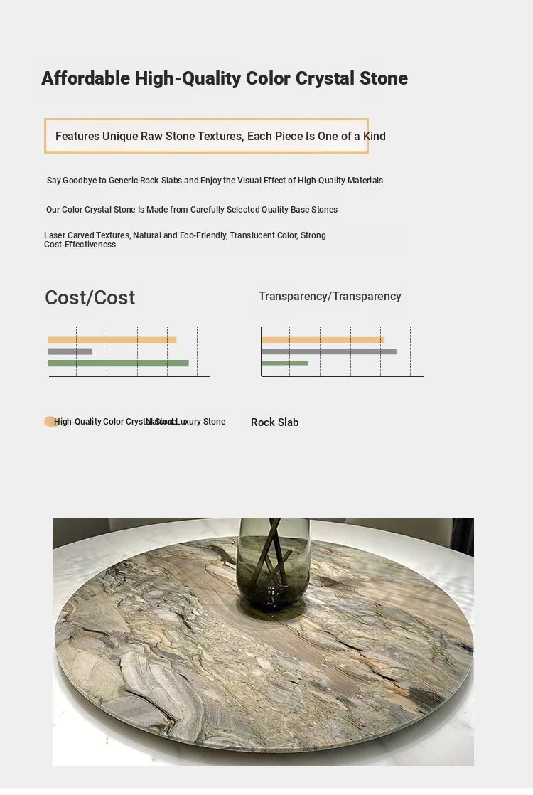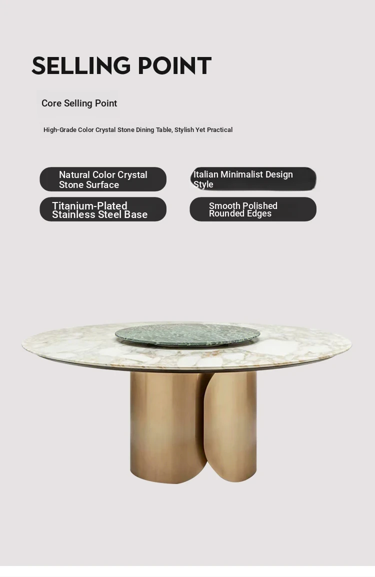 Luxury Natural Crystal Stone Round Dining Table and Chair Set for Small Spaces - Elegant High-End Marble Design for Upscale Living Rooms and Apartments