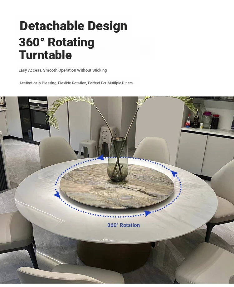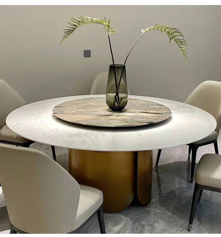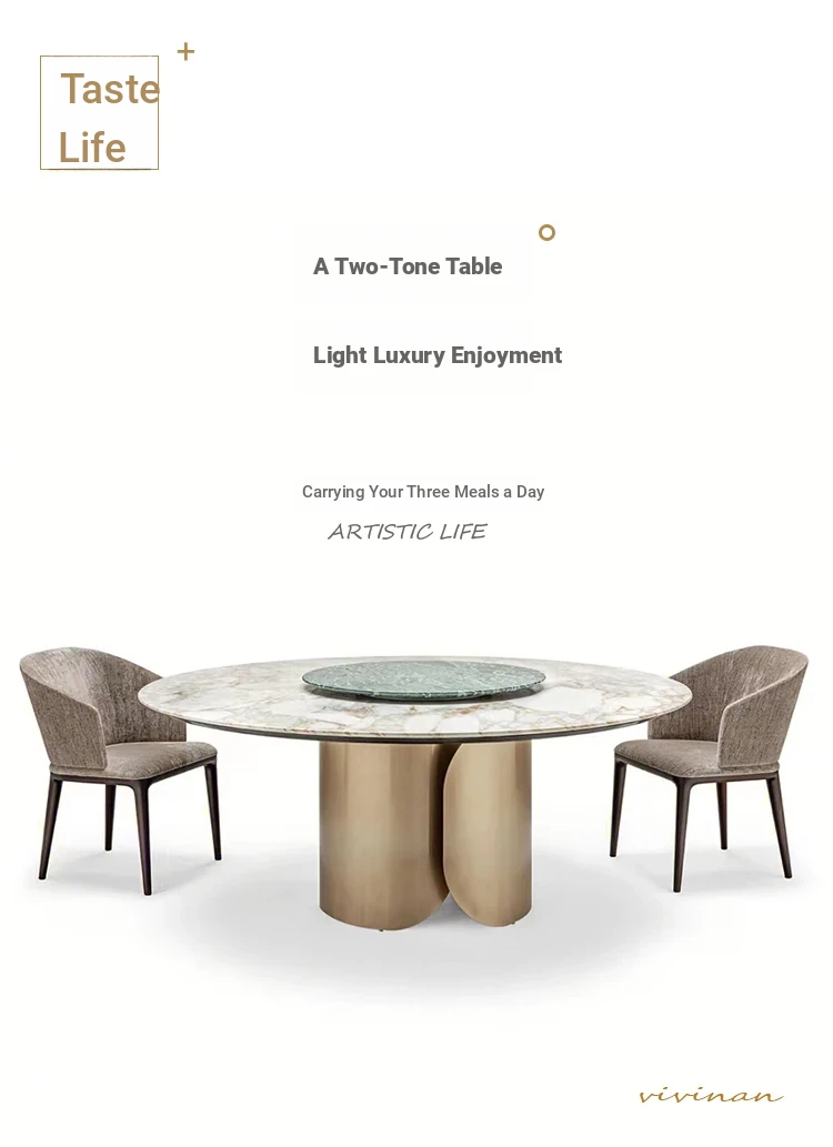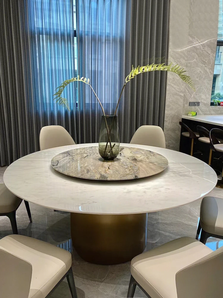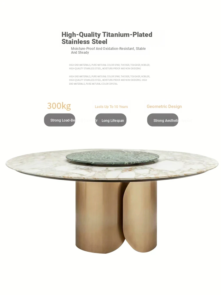 Luxury Natural Crystal Stone Round Dining Table and Chair Set for Small Spaces - Elegant High-End Marble Design for Upscale Living Rooms and Apartments