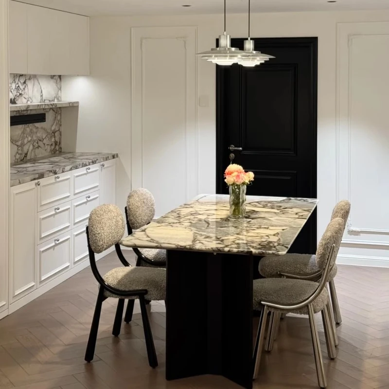 Luxury Ocean Storm Natural Marble Italian Minimalist Elephant White Villa Light Luxury Nordic Rectangular Dining Table