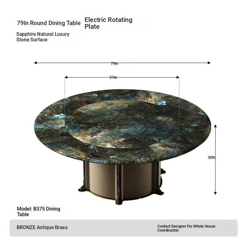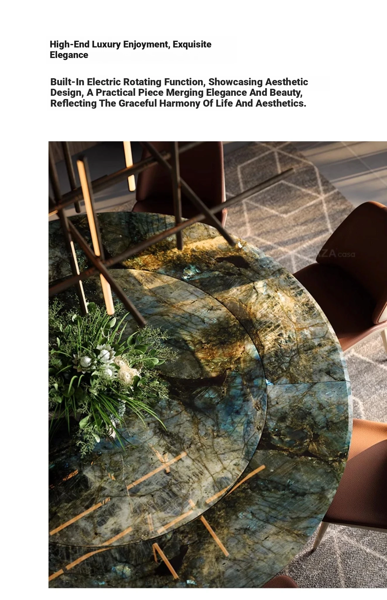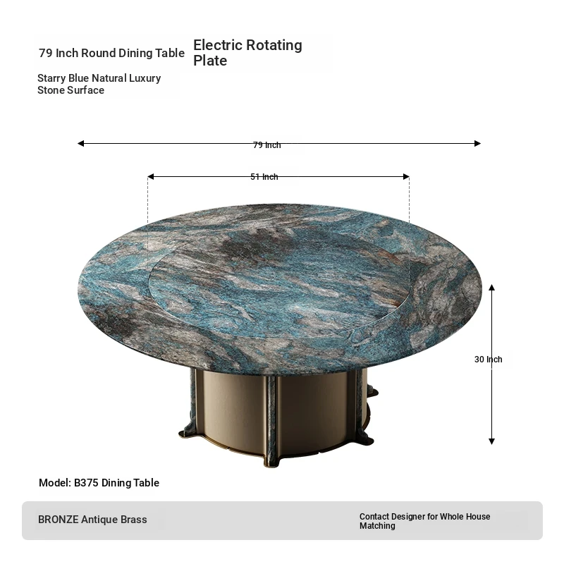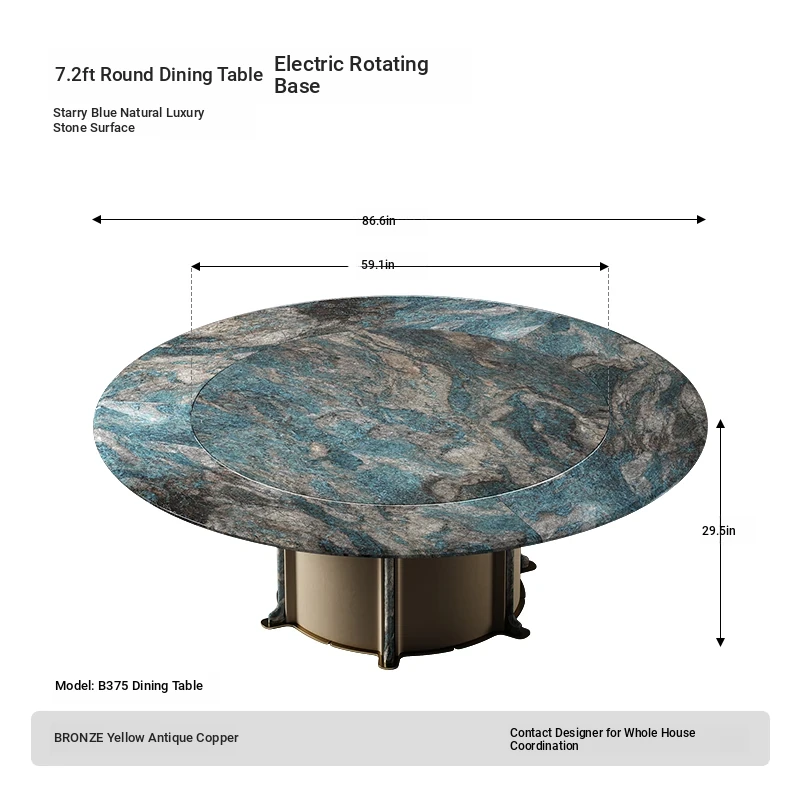 86.61in electric dining table [starry sky blue luxury stone + turntable]