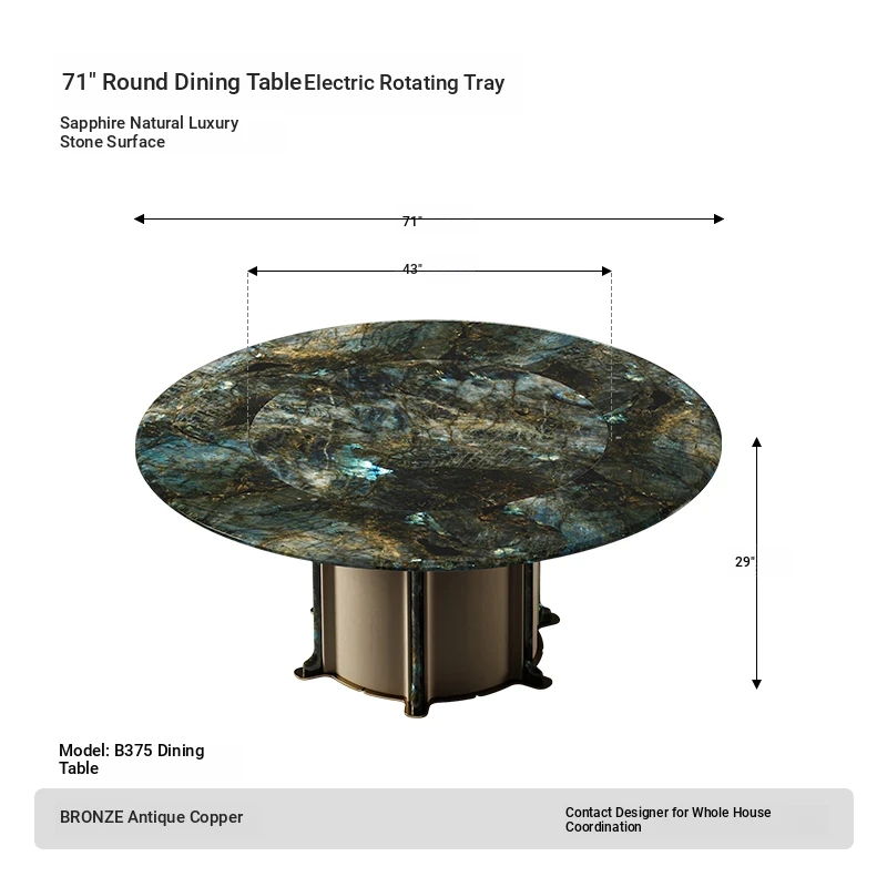 70.87in electric dining table [sapphire luxury stone + turntable]