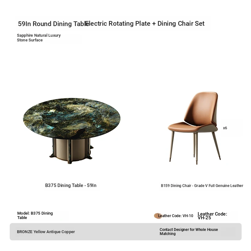 59.06in electric dining table [sapphire luxury stone + turntable] + B159 dining chair [V grade full leather] * 6
