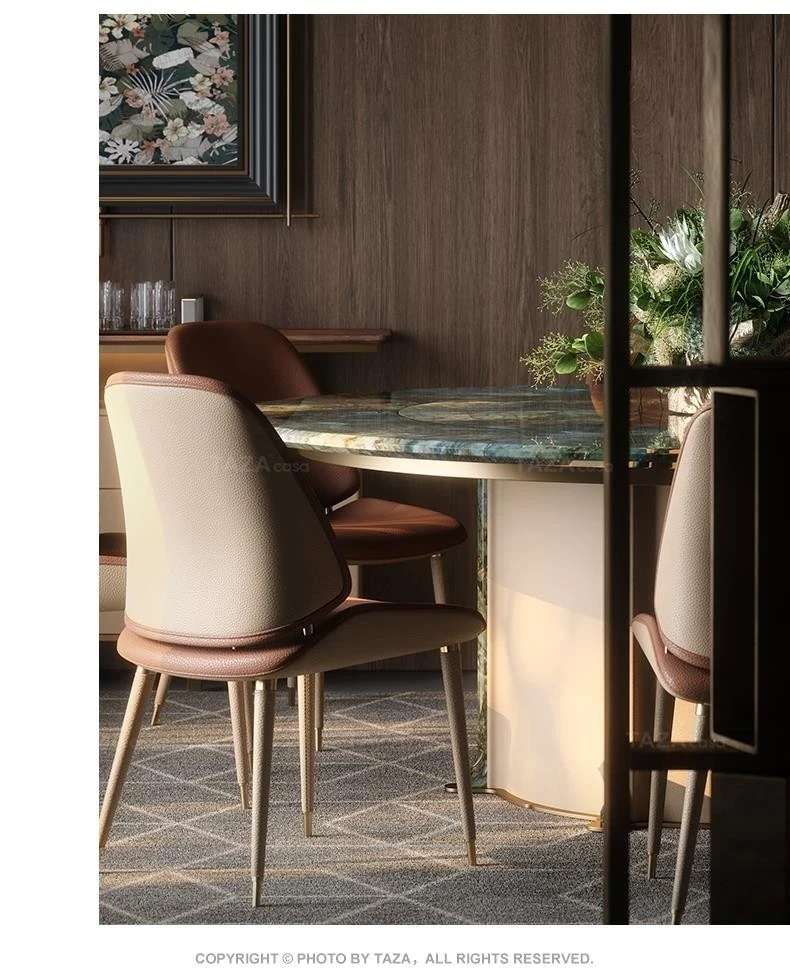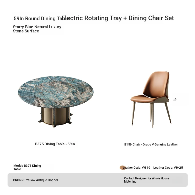 59.06in electric dining table [starry sky blue luxury stone + turntable] + B159 dining chair [V grade full leather] * 6