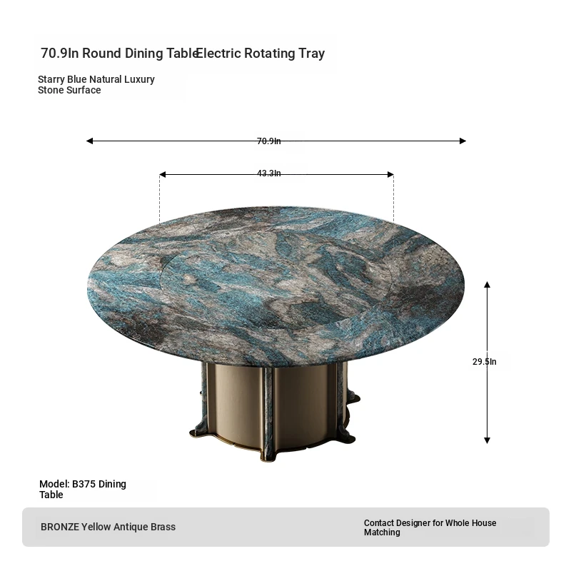 70.87in electric dining table [starry sky blue luxury stone + turntable]