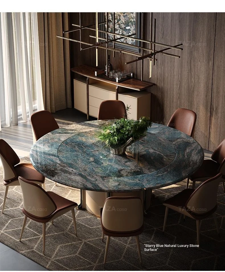 78.74in electric dining table [starry sky blue luxury stone + turntable]