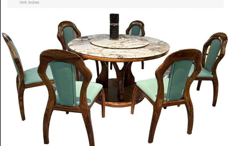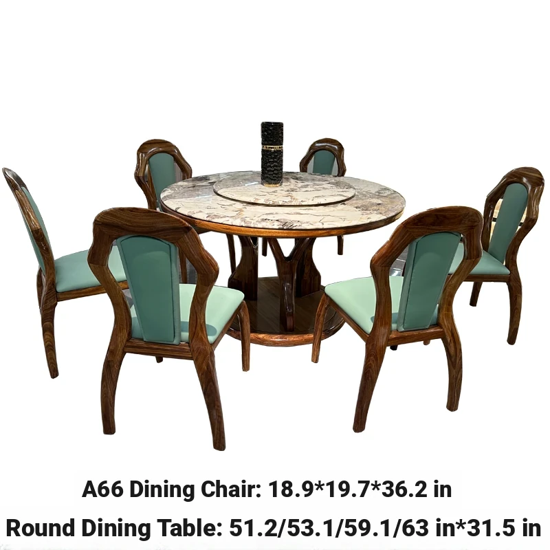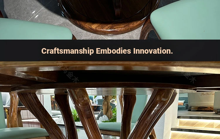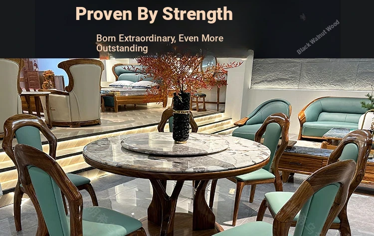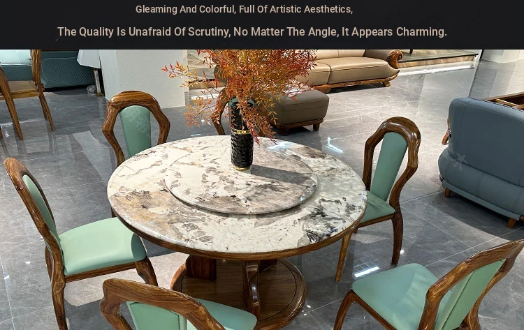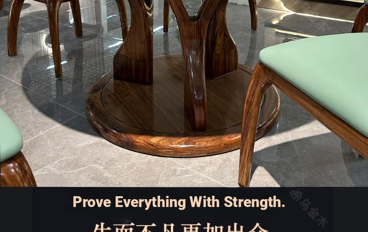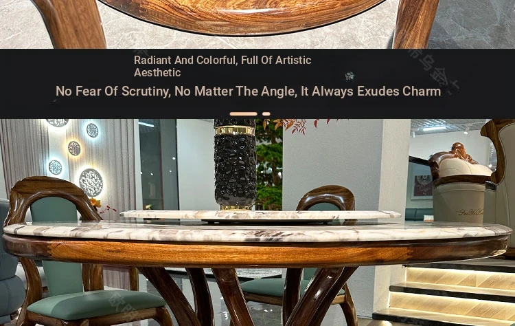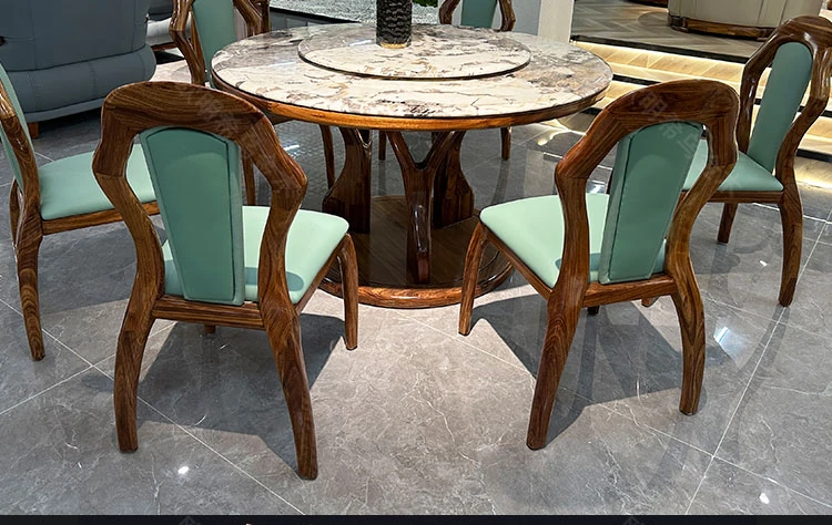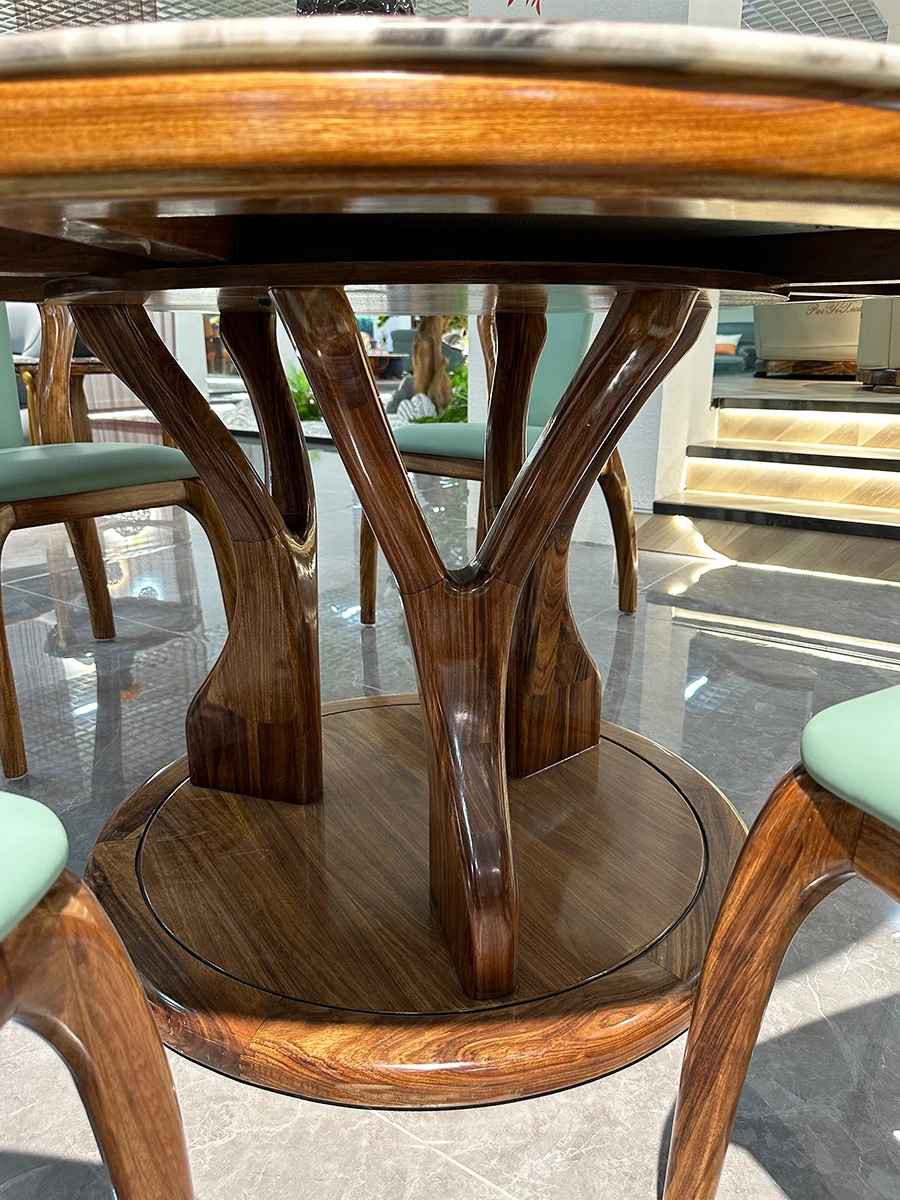 Luxury Solid Wood Round Dining Table Set in Wenge Finish for Villas - Elegant New Chinese Style Dining Table with Rock Plate for Spacious Homes