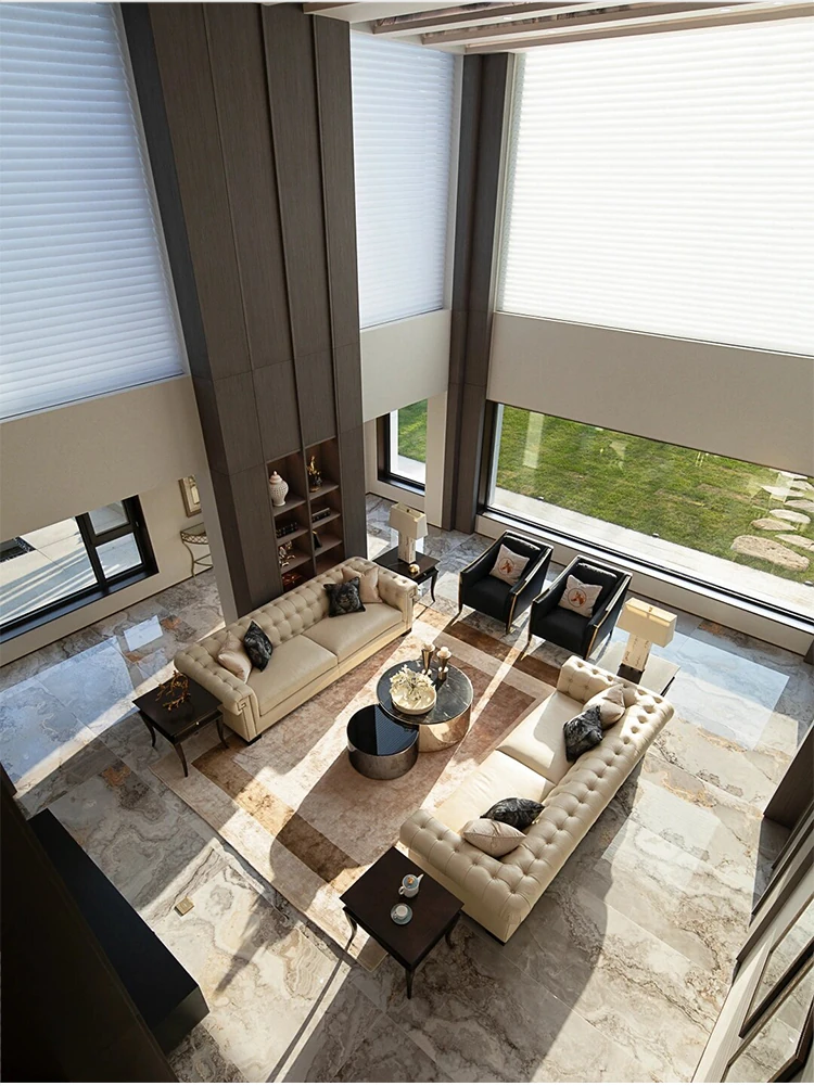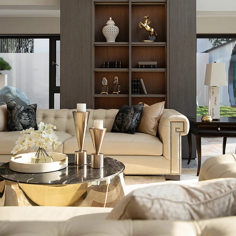 Modern American Genuine Leather Sofa for Living Room, Lobby, Conference Room - Chic Minimalist Design with Elegant Pull-Tab Detail, Perfect for Stylish Spaces