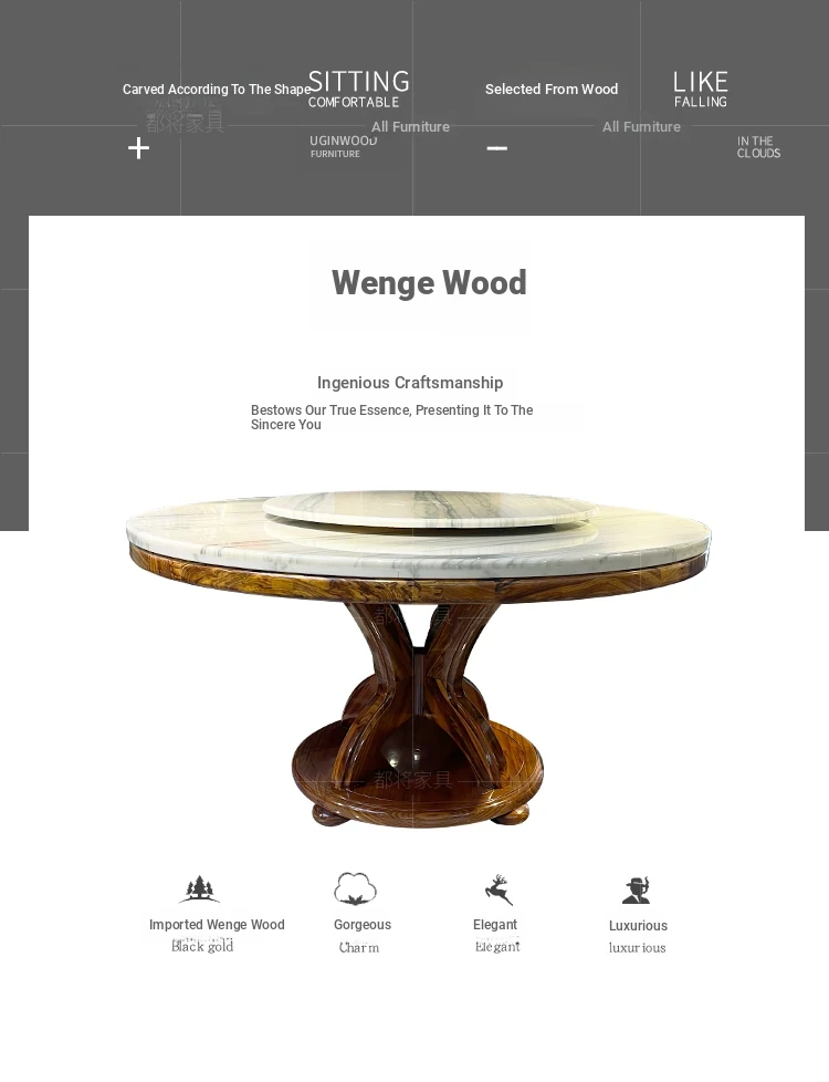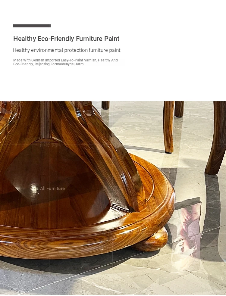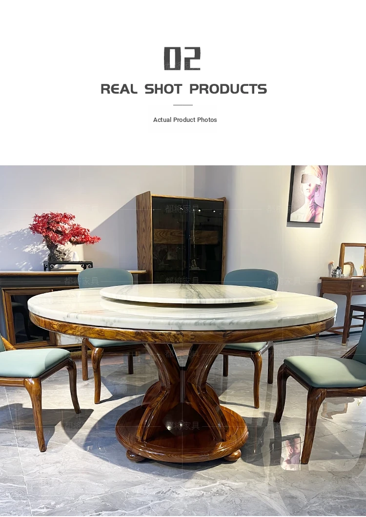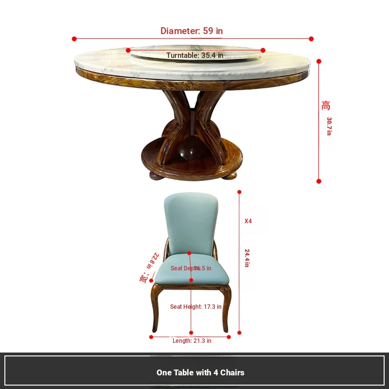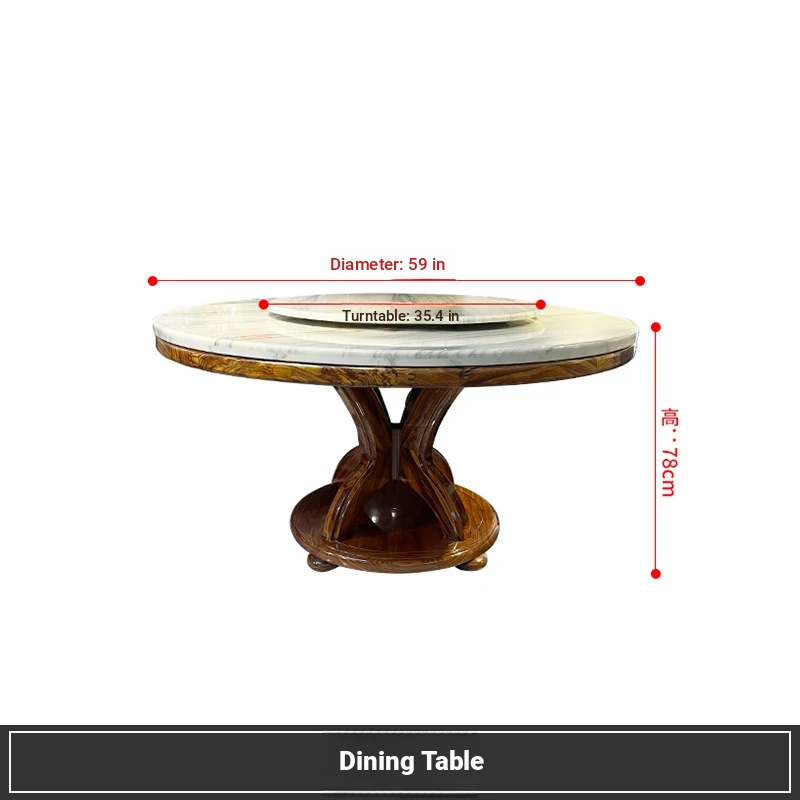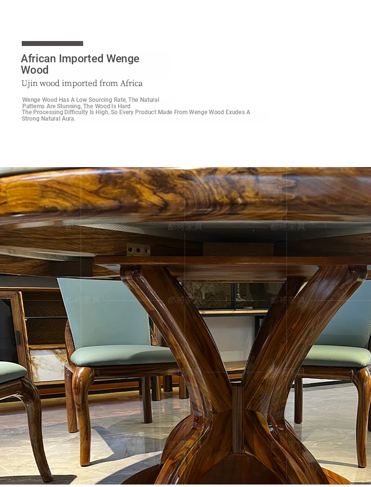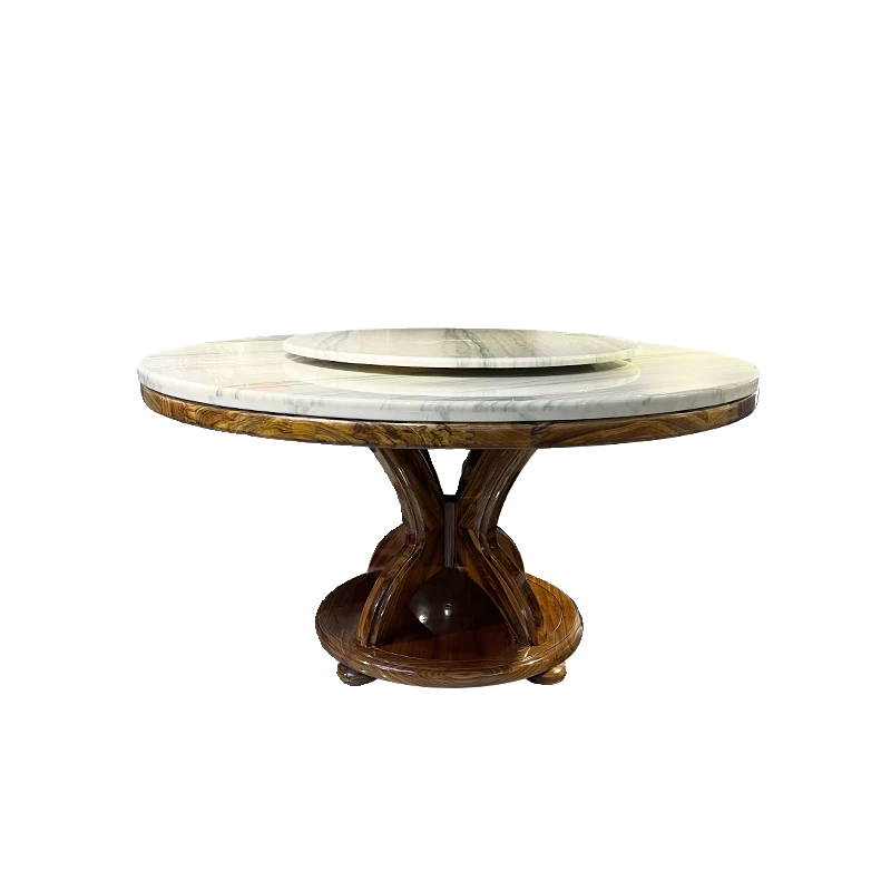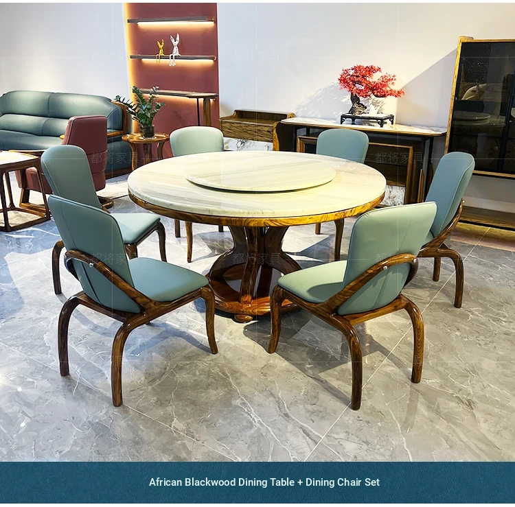 Modern Chinese-Style Luxury Round Dining Table Set with African Wenge Wood and Marble Finish – Elegant Dining Furniture for a Sophisticated Restaurant Look