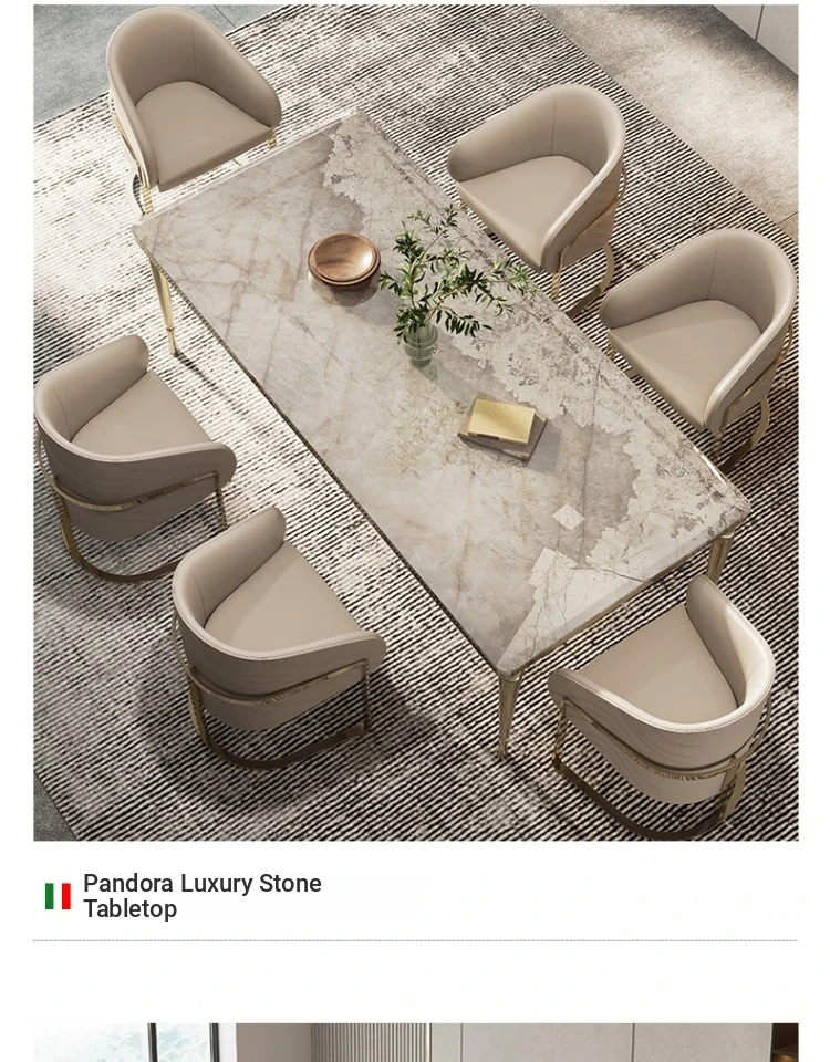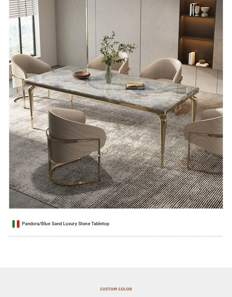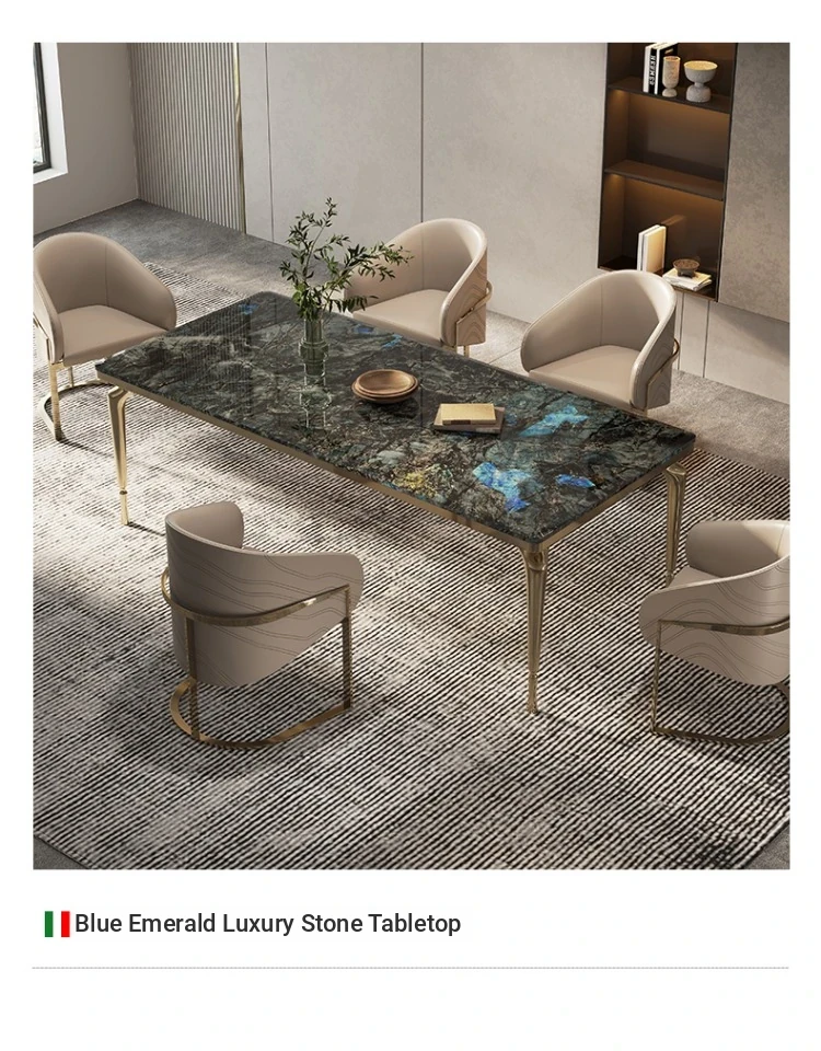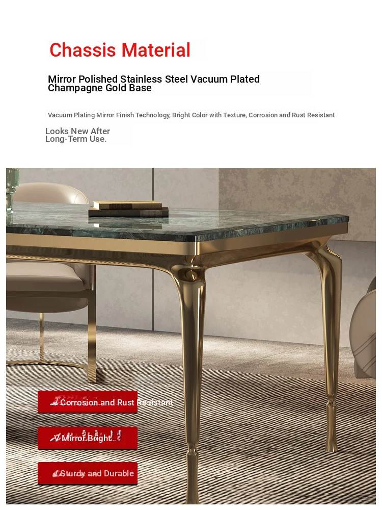 Natural luxury stone dining table/94.49in/mirror champagne gold