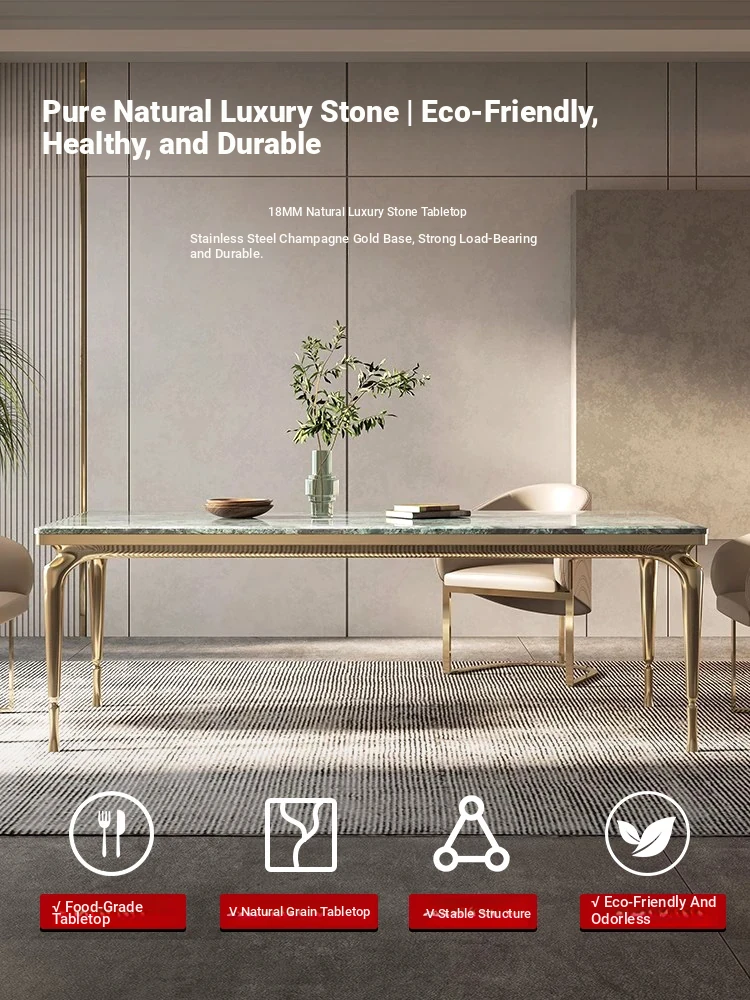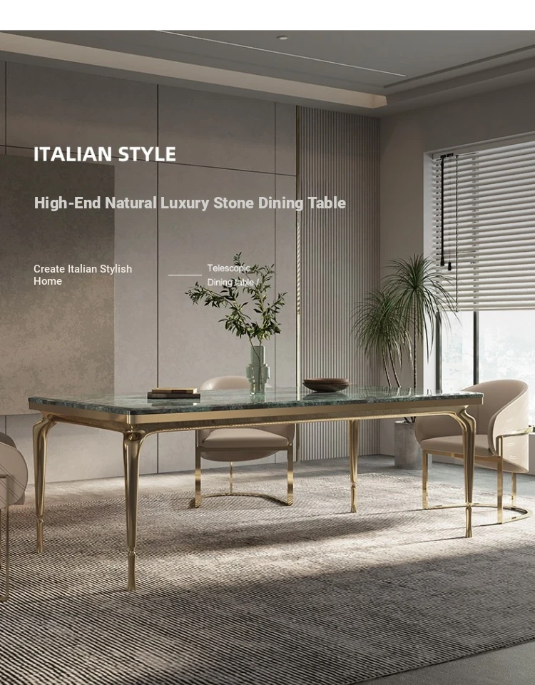 Natural luxury stone dining table/86.61in/mirror champagne gold