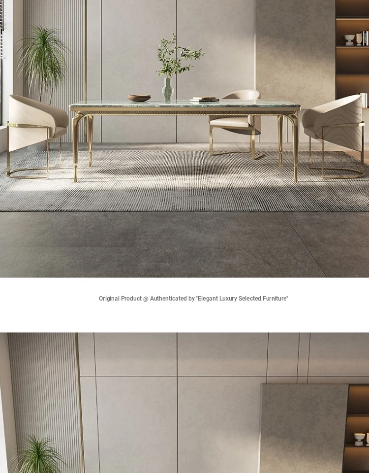 Natural Fendi White Luxury Stone Dining Table/78.74in/Champagne Gold
