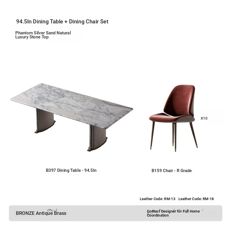 Dining Table 94.49in (Phantom Silver Sand Luxury stone surface) + B159 dining chair * 10 [Grade R]