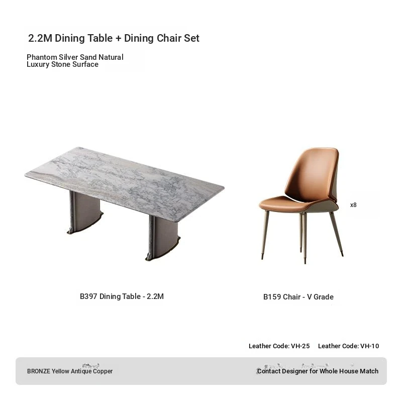 Dining Table 86.61in (Phantom Silver Sand Luxury stone surface) + B159 dining chair * 8 [Grade R]