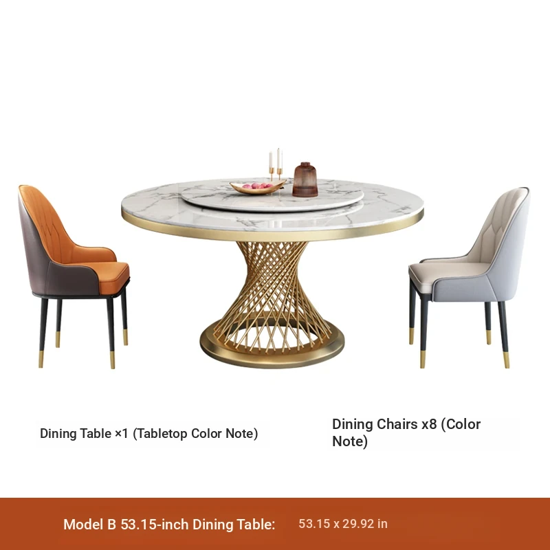 53.15 in dining table + dining chair * 8 [marble/rock board