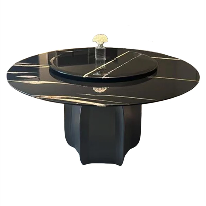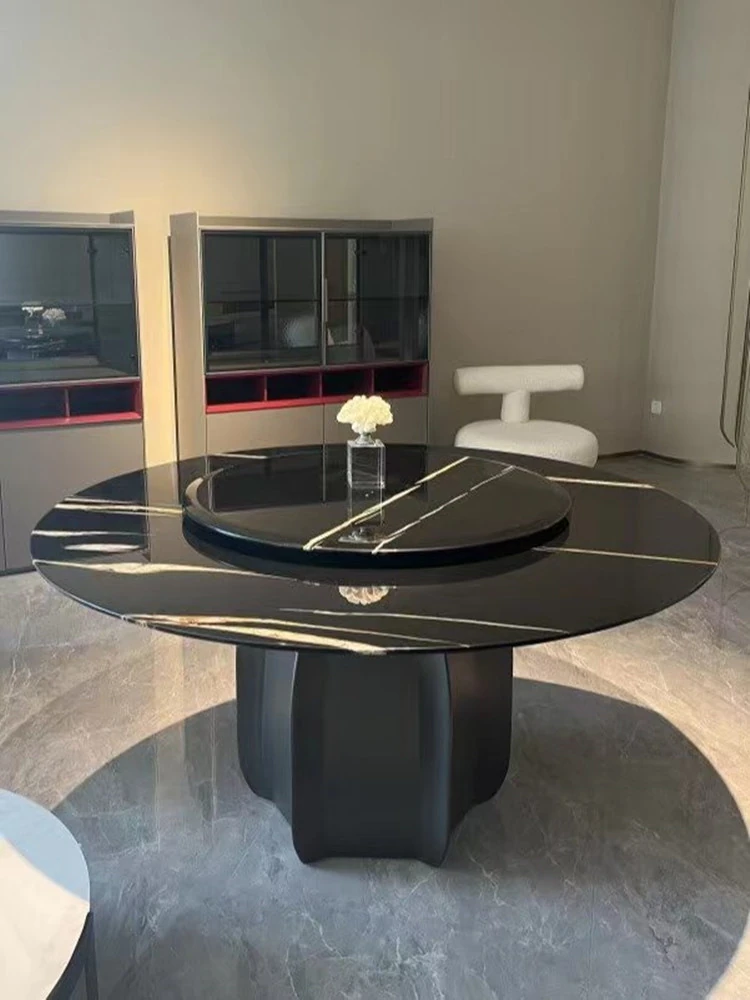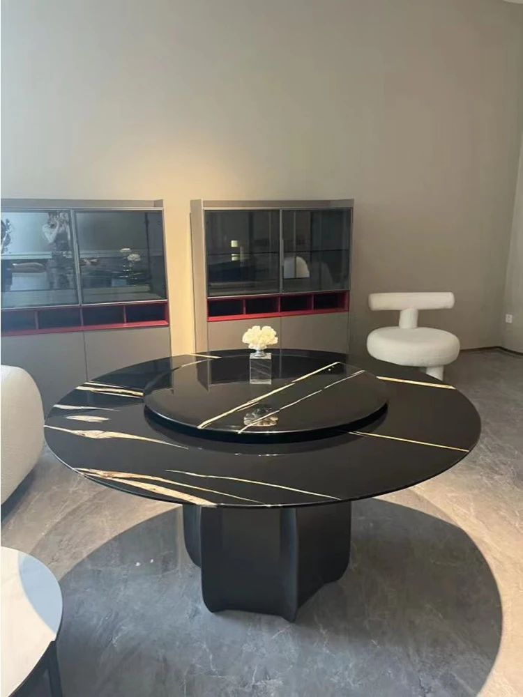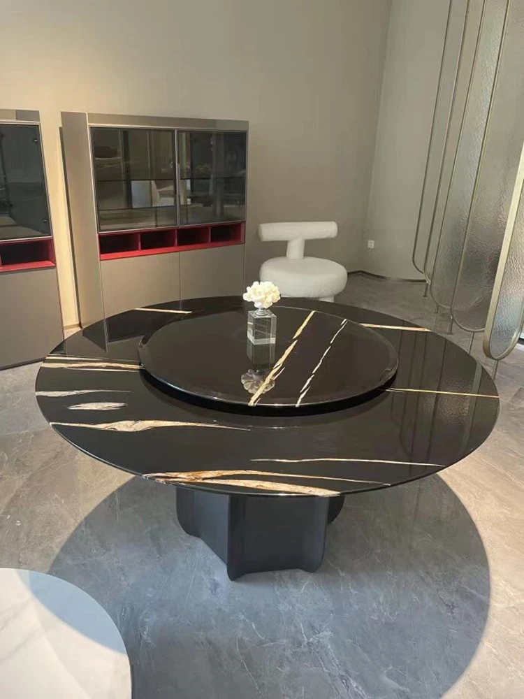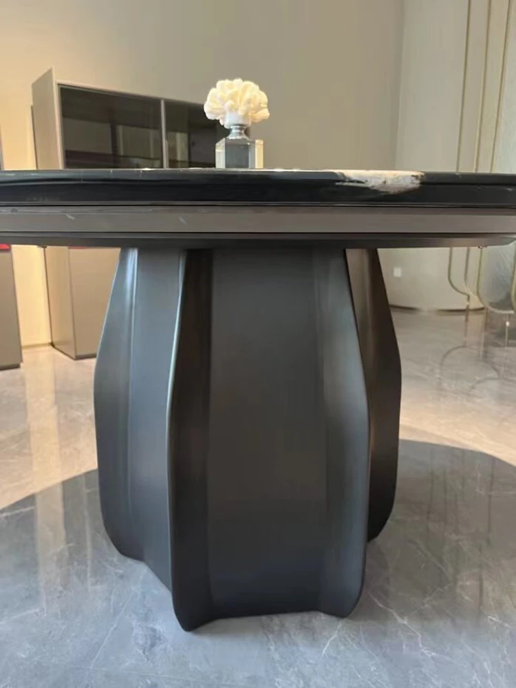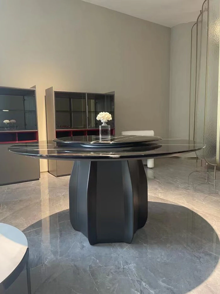 Modern Minimalist Marble Dining Table Set with Luxe Chairs – Perfect for Small and Large Spaces, Featuring a Chic Round Design in Smoky Wood Finish for a Stylish Dining Experience.