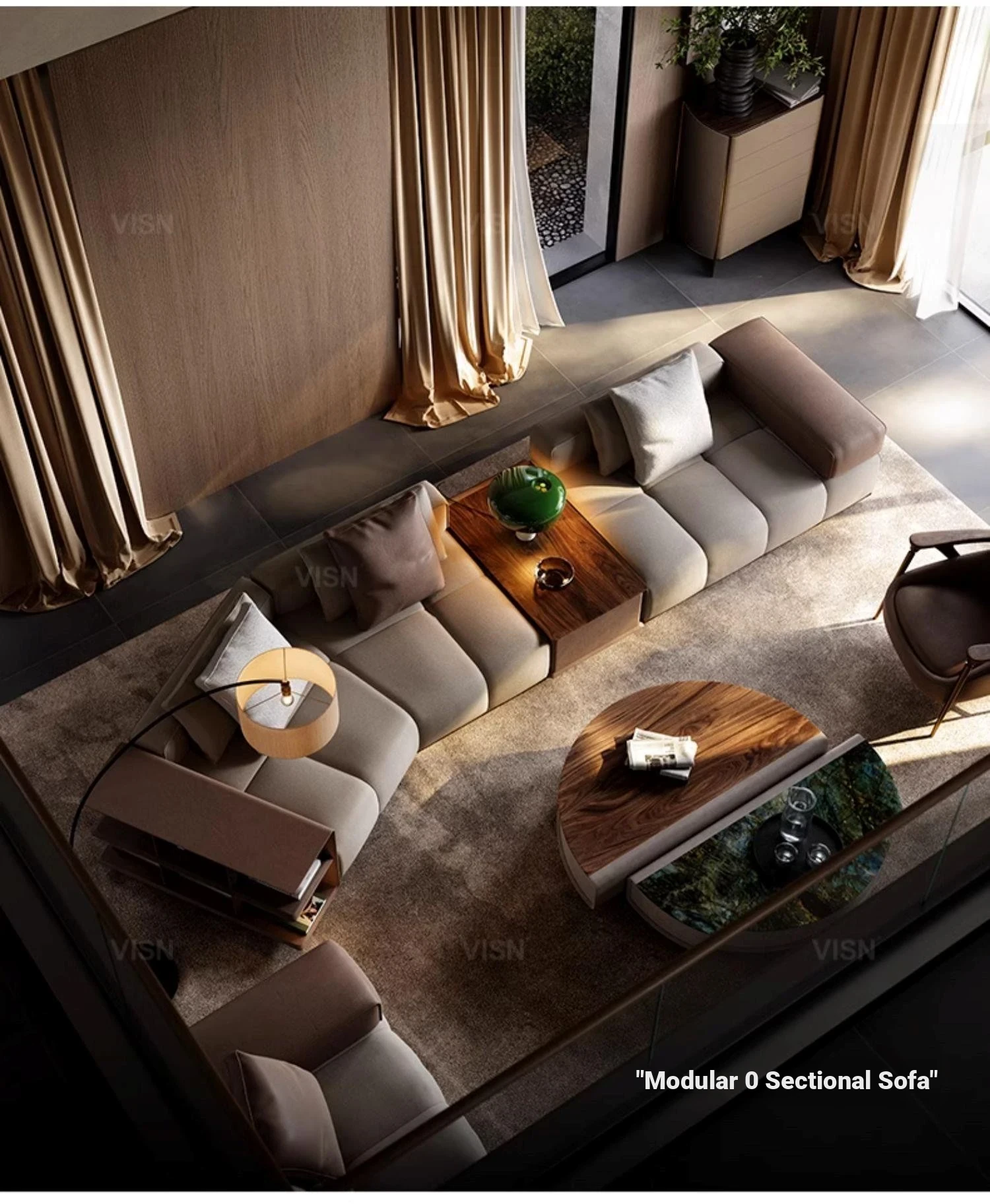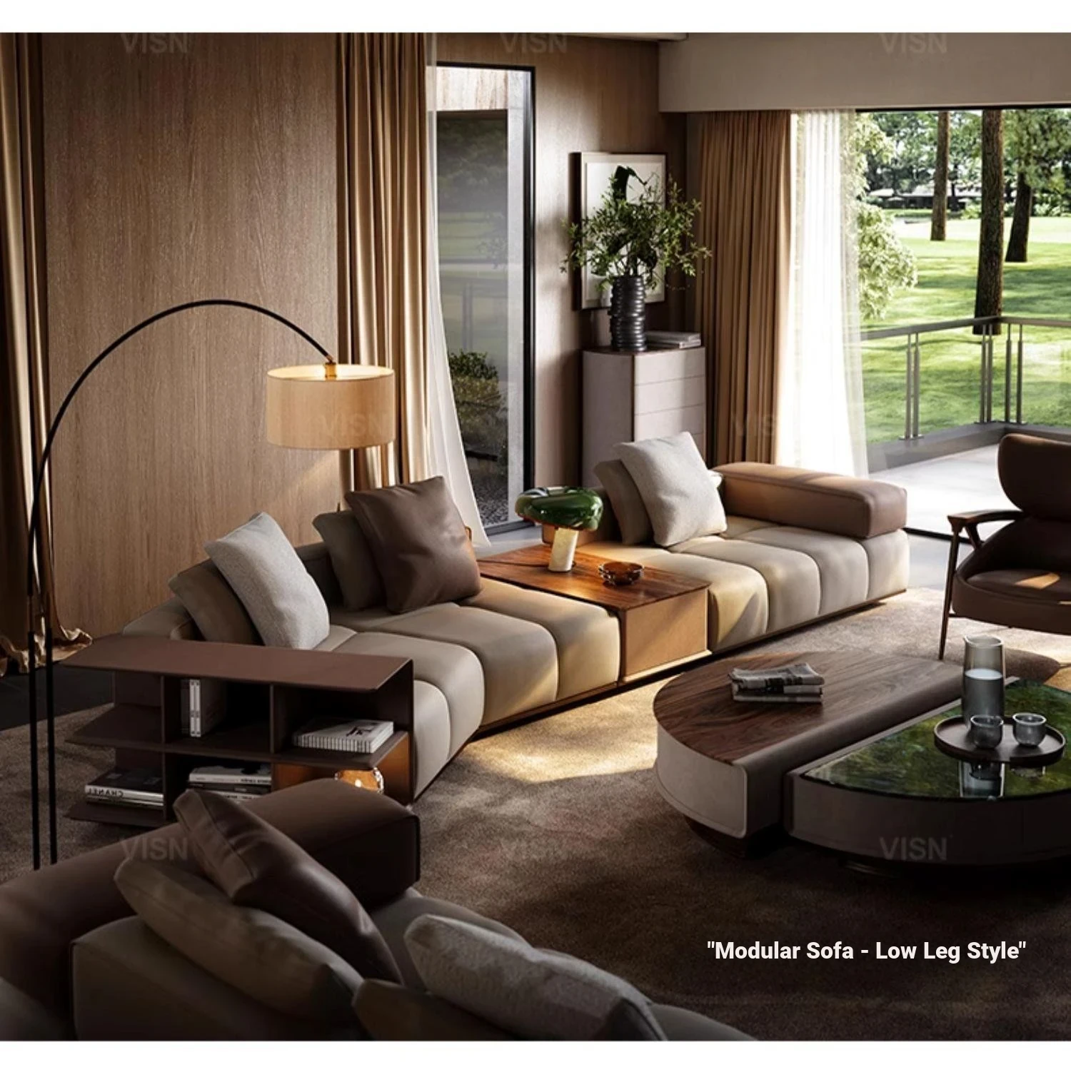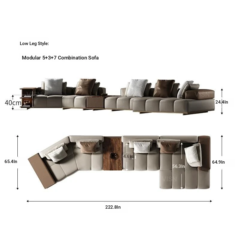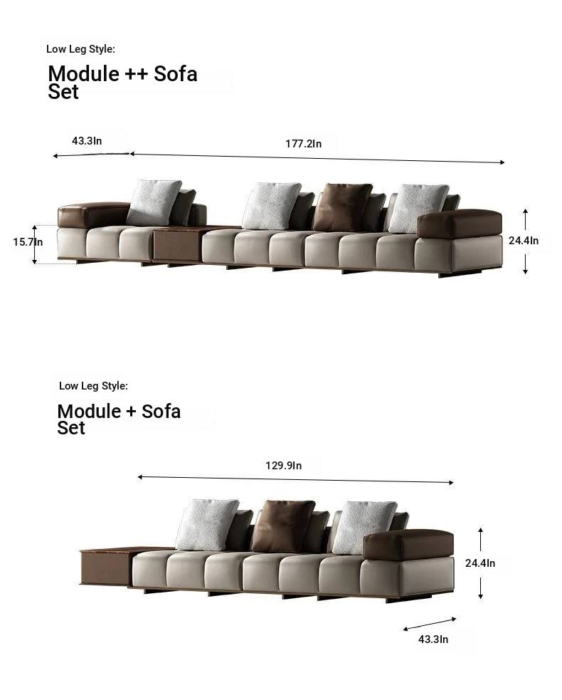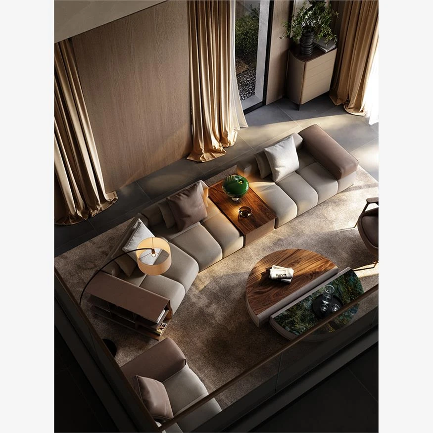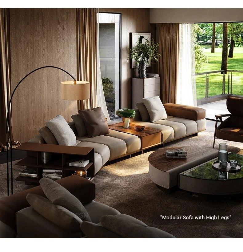 Modern Minimalist Modular Leather Sofa Set for Villa Living Room - Designer Collection with Complete Design Plan, Perfect for Stylish Interiors!