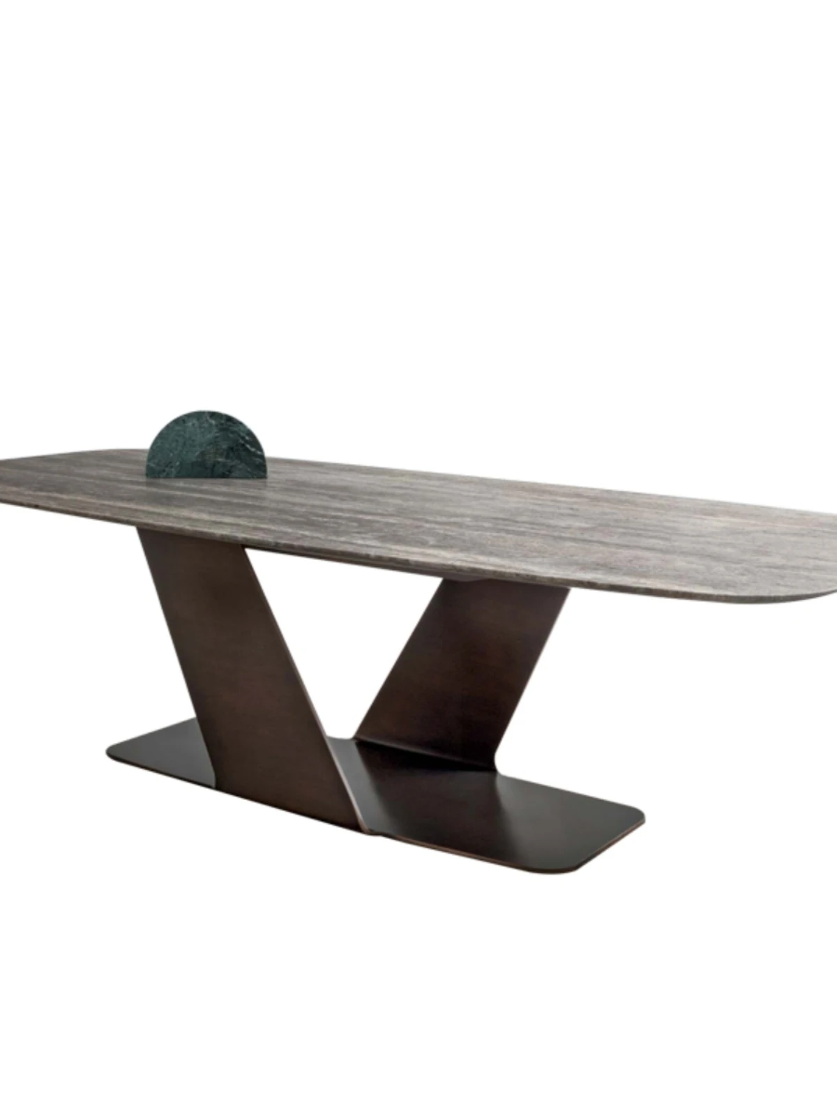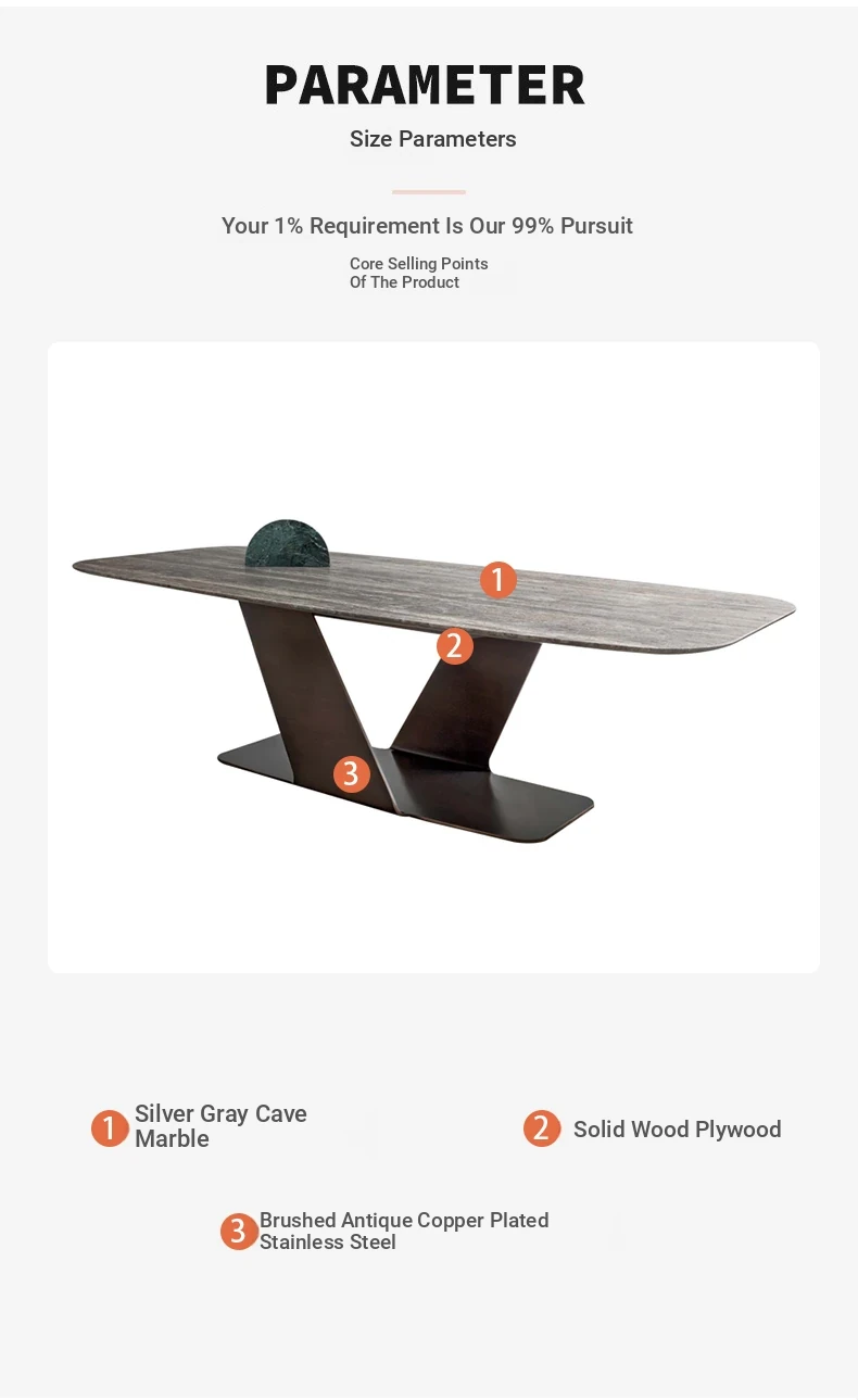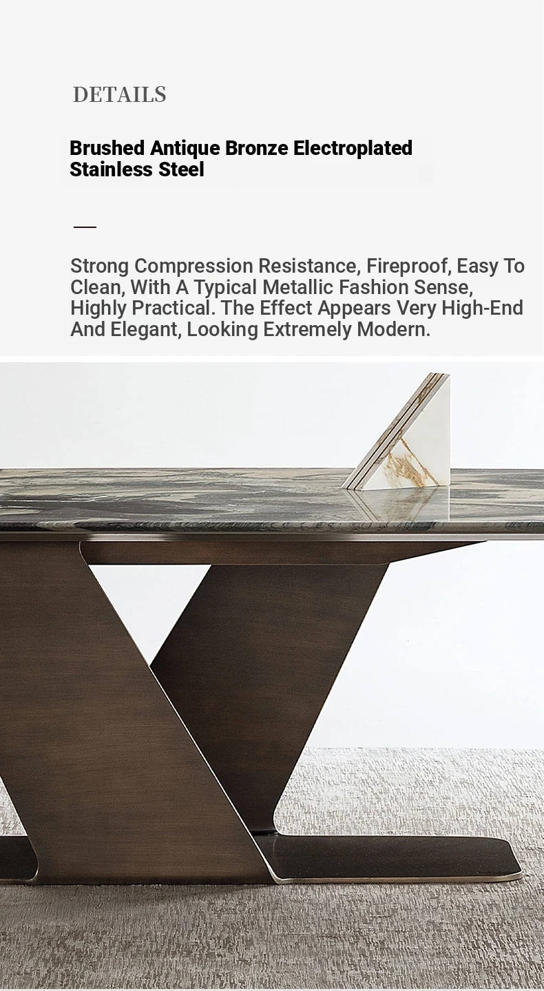 Modern Minimalist Rectangular Marble Dining Table - Designer Villa Style with Stainless Steel for Home - Italian Light Luxury Dining Table