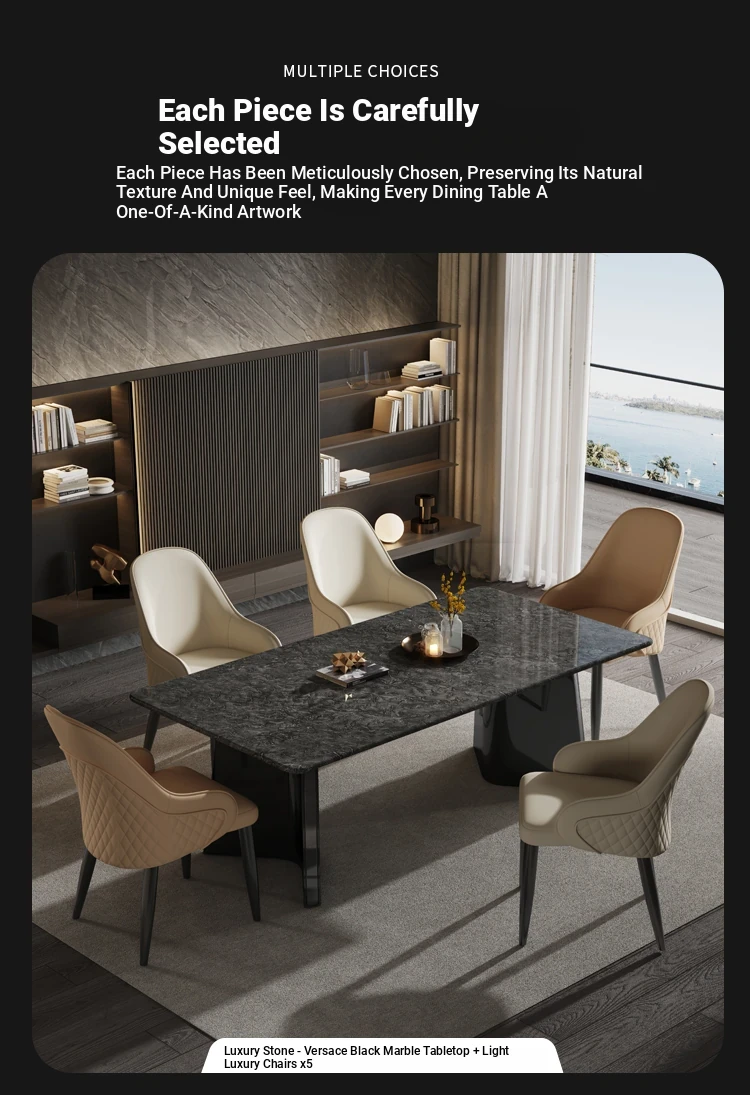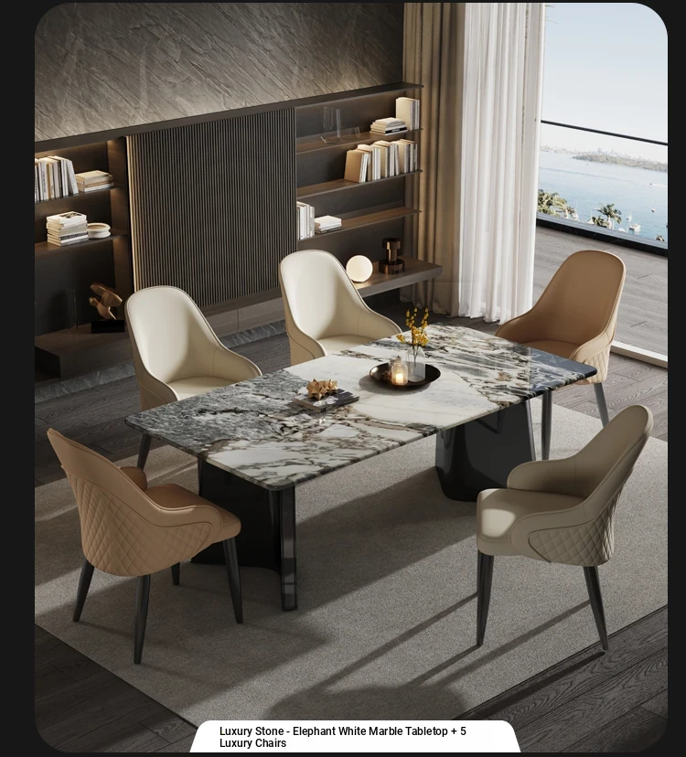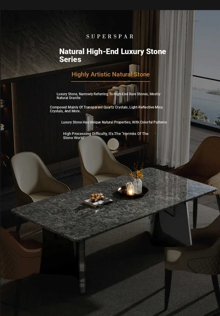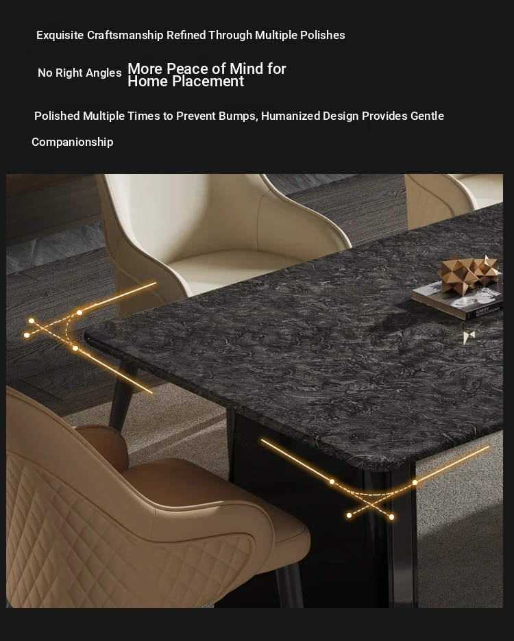 Natural Cosmic Gold Marble Rectangular Dining Table - Luxurious Silk Vein Design for Spacious Living Spaces and Upscale Homes. Perfect for a Touch of Elegance in Your Dining Area!