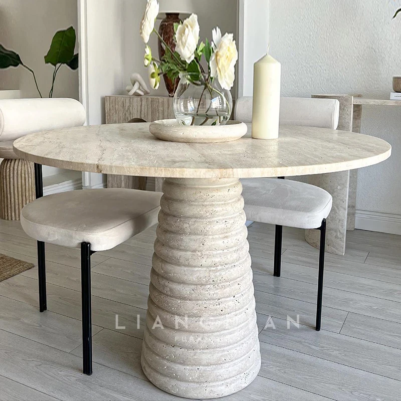 New Nordic Luxury Round Dining Table - Unique Artistic Design with Natural Marble Stone, Elevate Your Dining Experience with Sophisticated Style.