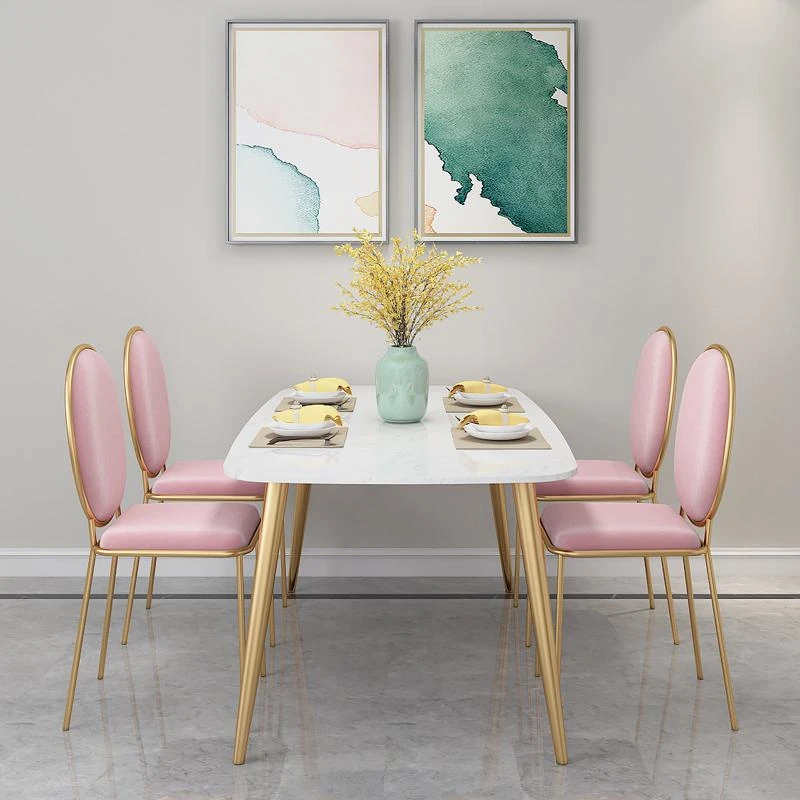 Nordic Ins Style Electroplated Gold Marble Dining Table Set - Elegant and Minimalist Design for Small Spaces, Perfect for Home Dining Experience