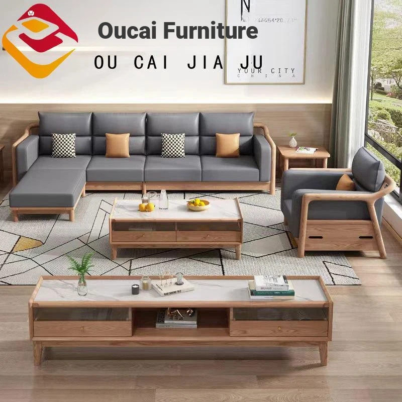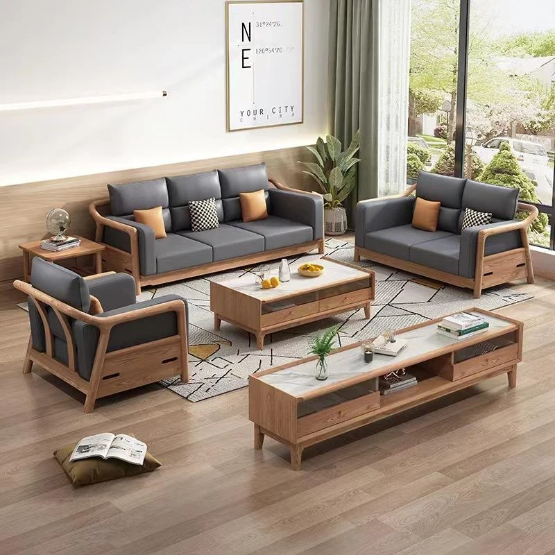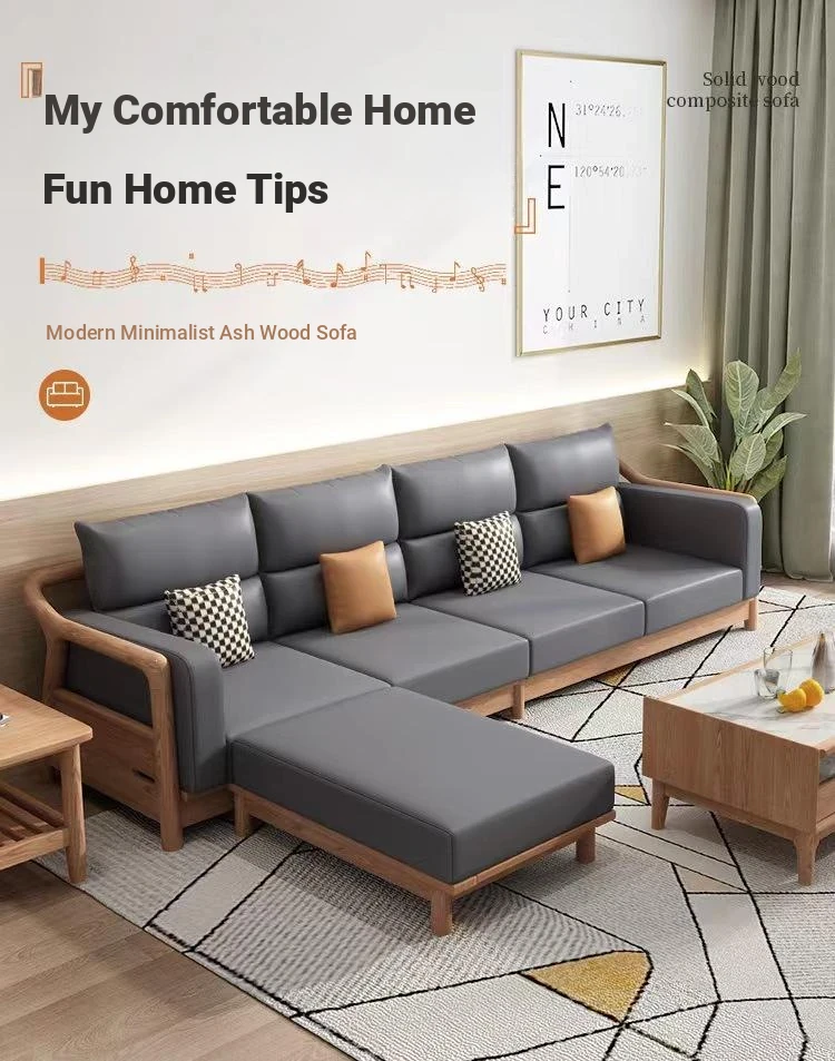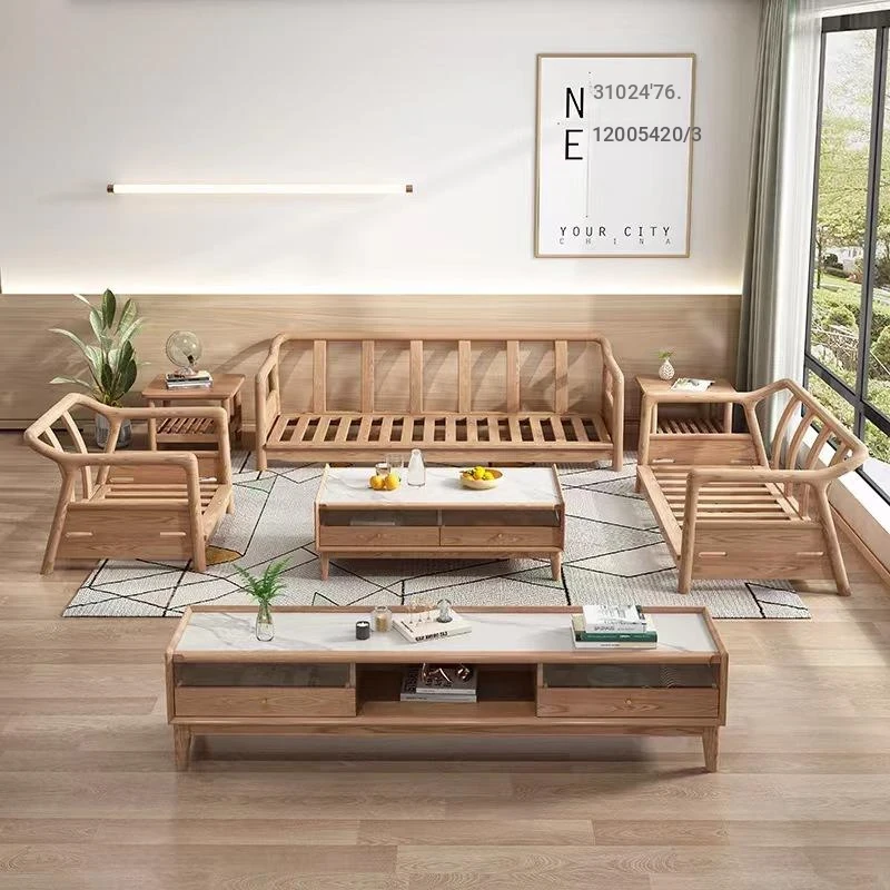 Nordic Solid Wood Sofa - Versatile Ash Wood with Winter-Summer Technology Fabric, Modern Minimalist Living Room Sofa Set in Original Wood Design