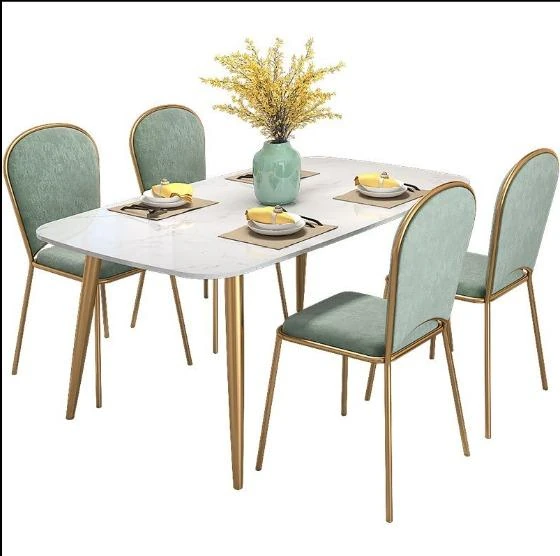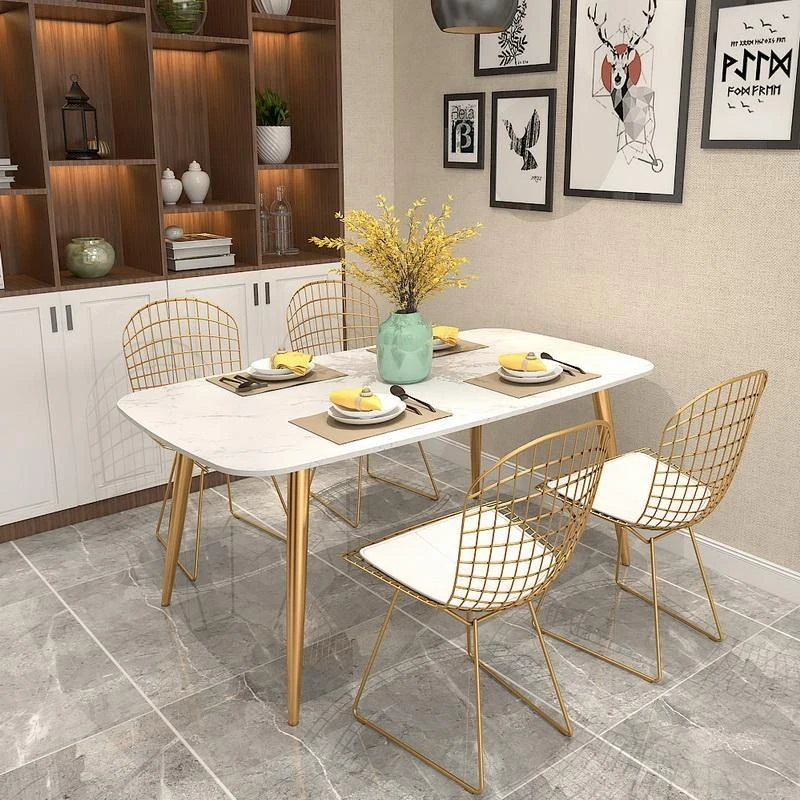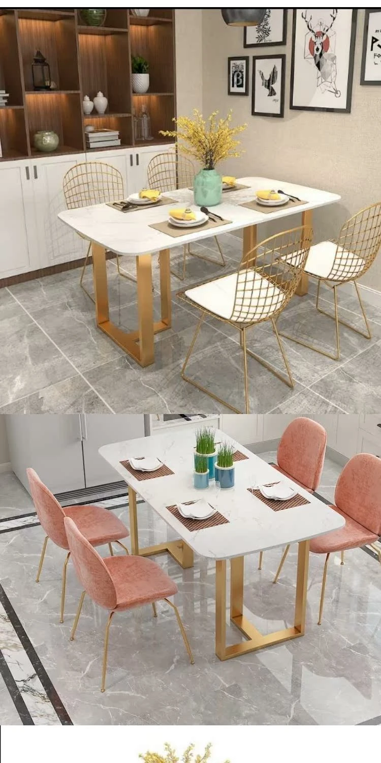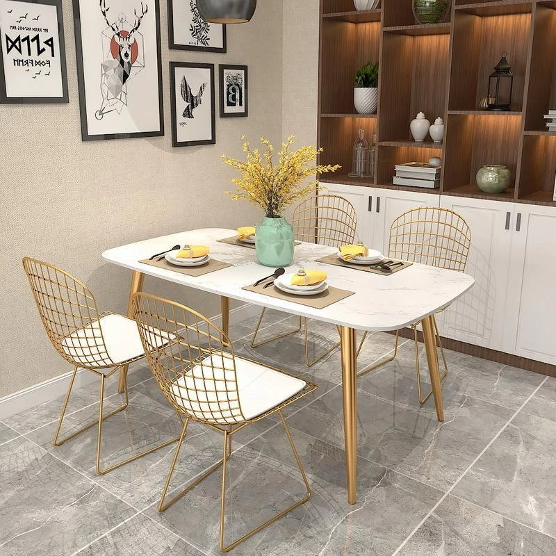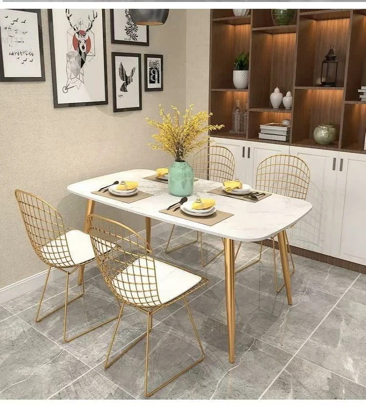Nordic Style Marble Dining Table Set - Modern Minimalist Rectangular Table and Chairs Combo for Small Spaces, Perfect for Home Use, Trendy Design