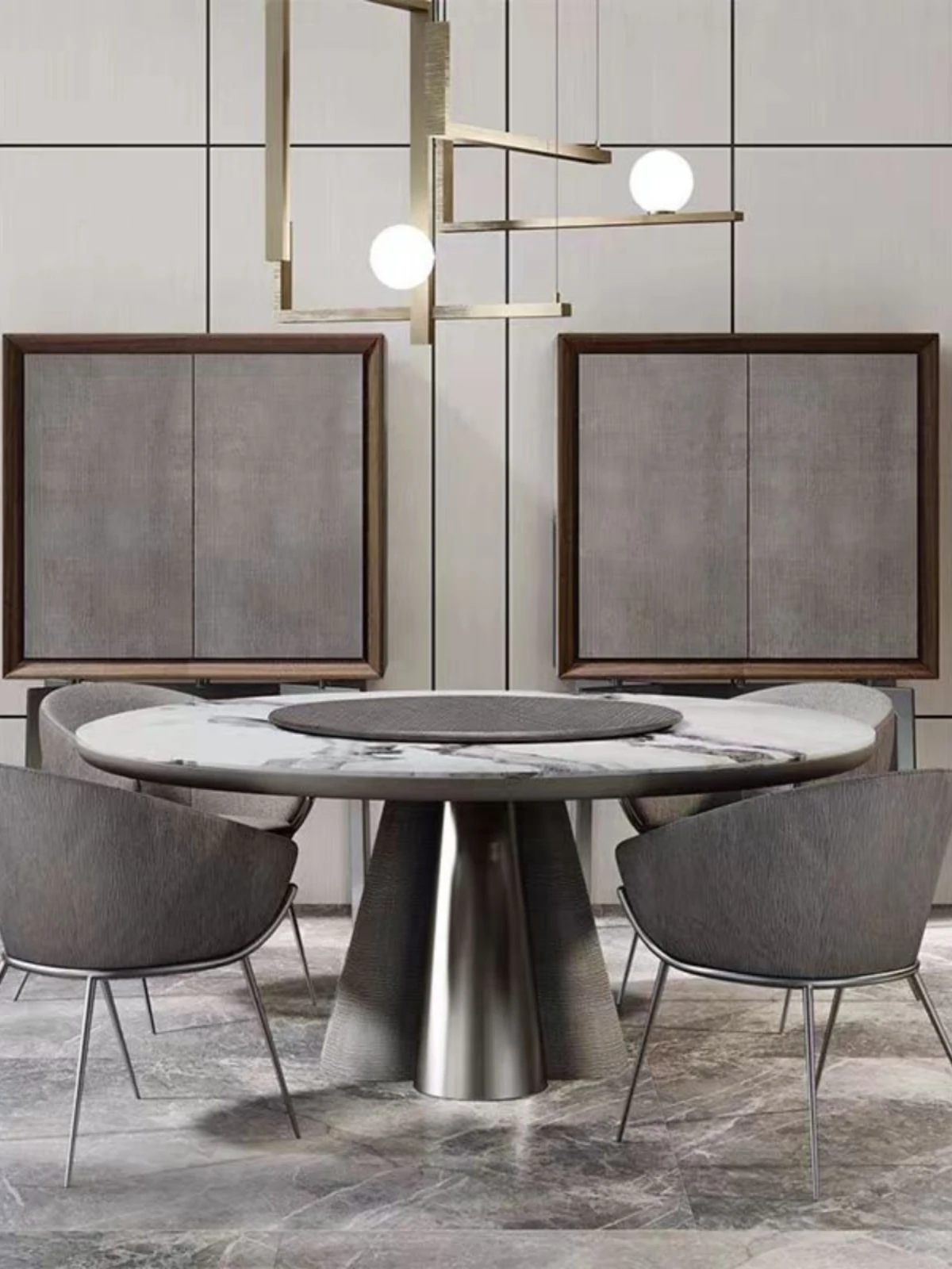 Postmodern Luxury Jazz White Marble Dining Table and Chair Set - Designer High-End Italian Round Table for Home Use
