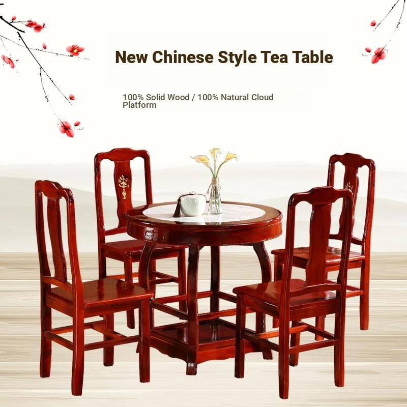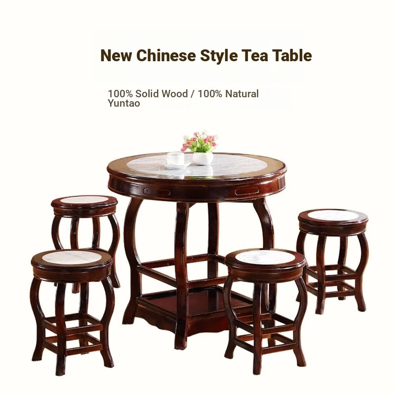 Solid Wood Café Marble Round Table Set - Stylish and Durable Dining Furniture for Dessert Shops and Fast Food Restaurants, Perfect for Small Spaces!
