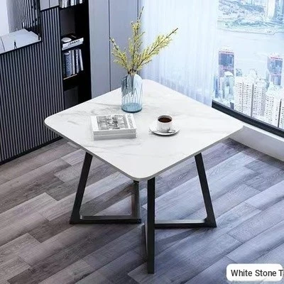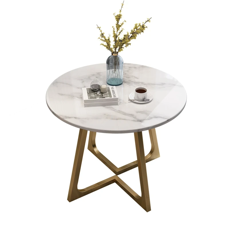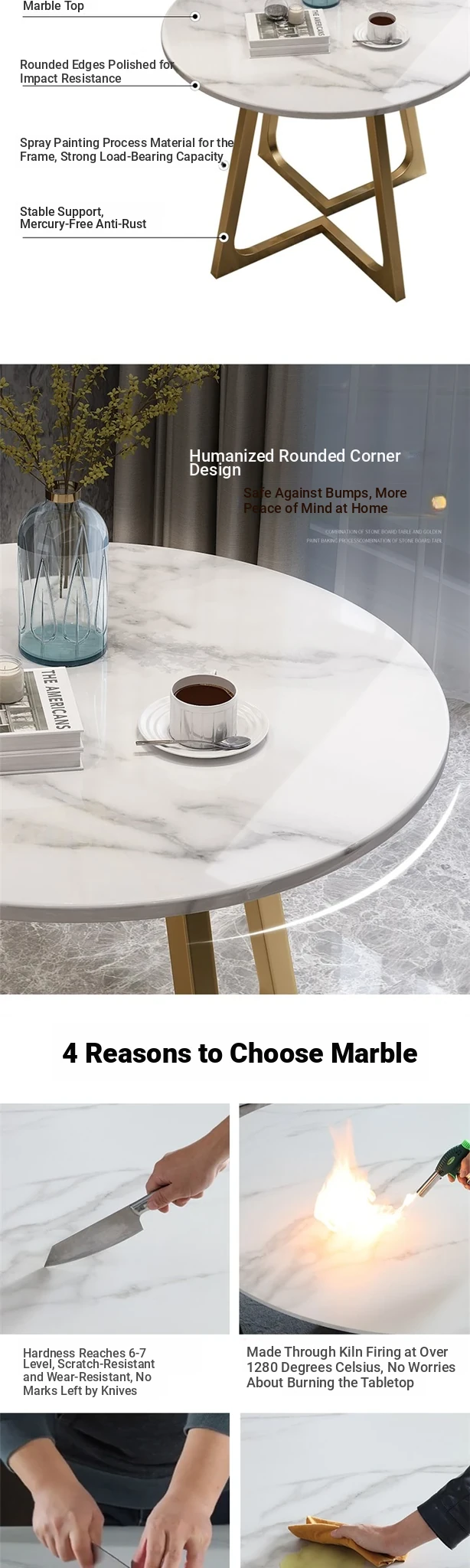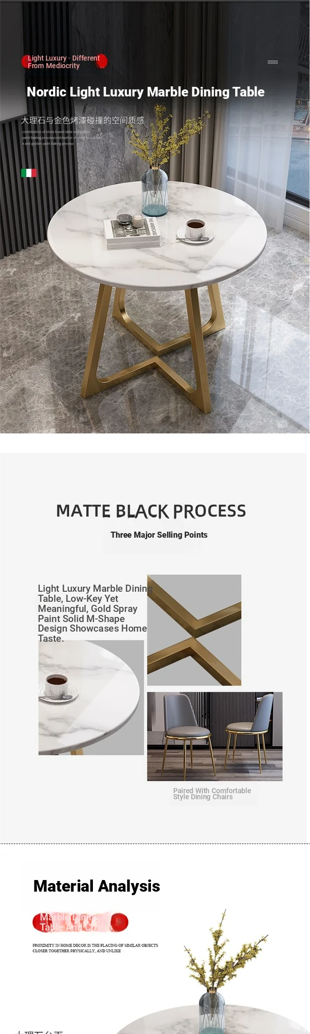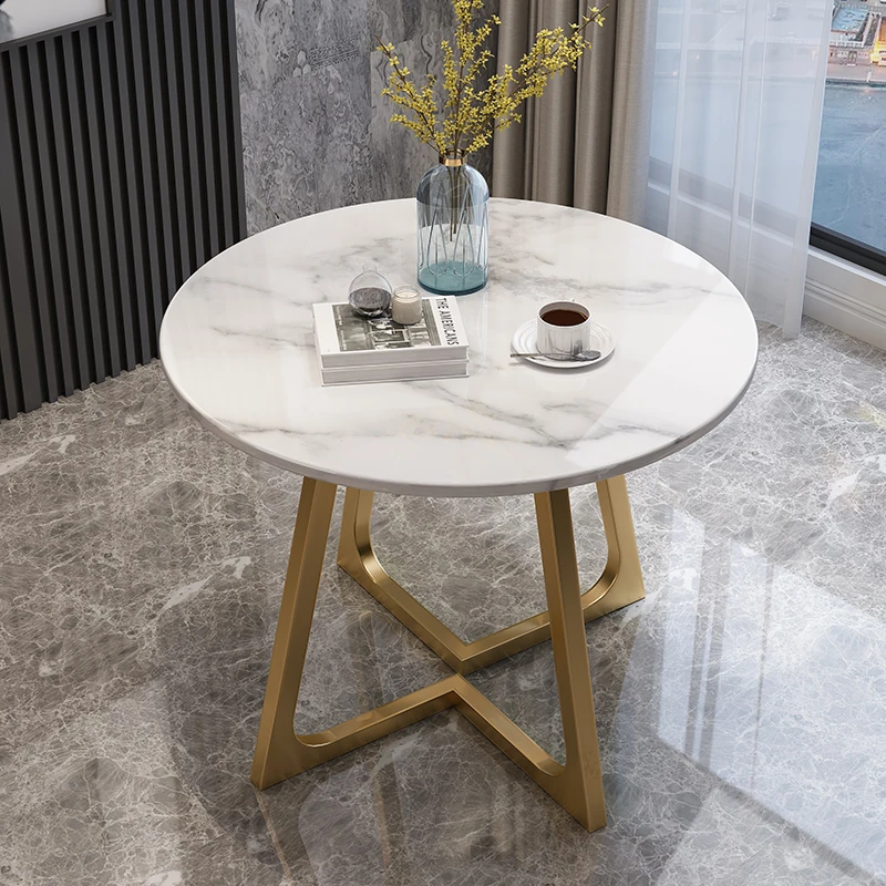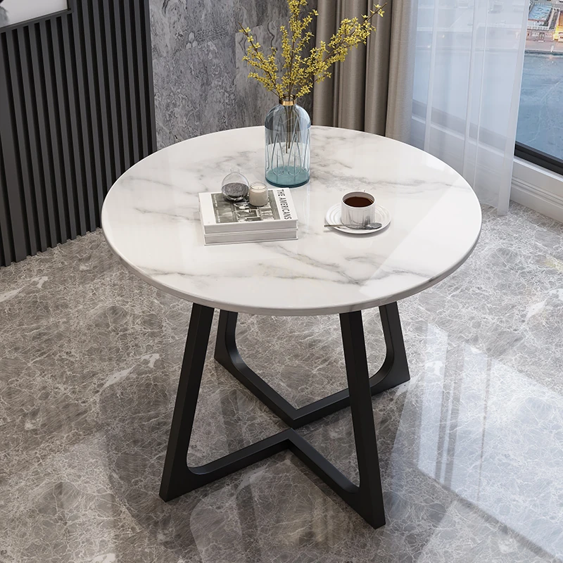 Stylish Round Dining Table with Stone Surface - Perfect for Casual Gatherings and Meeting Spaces