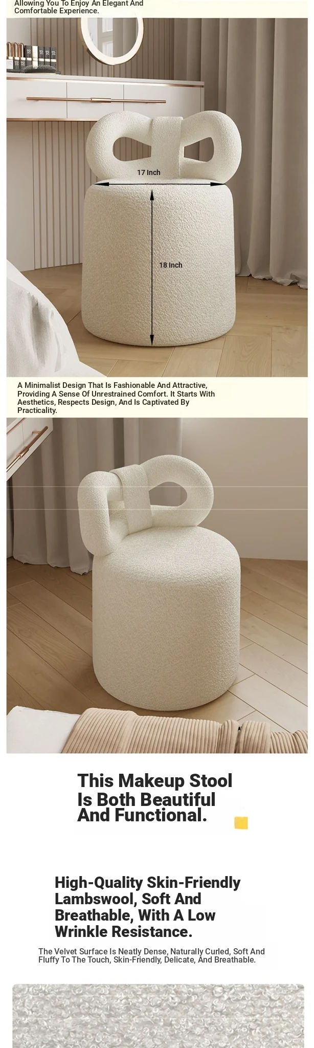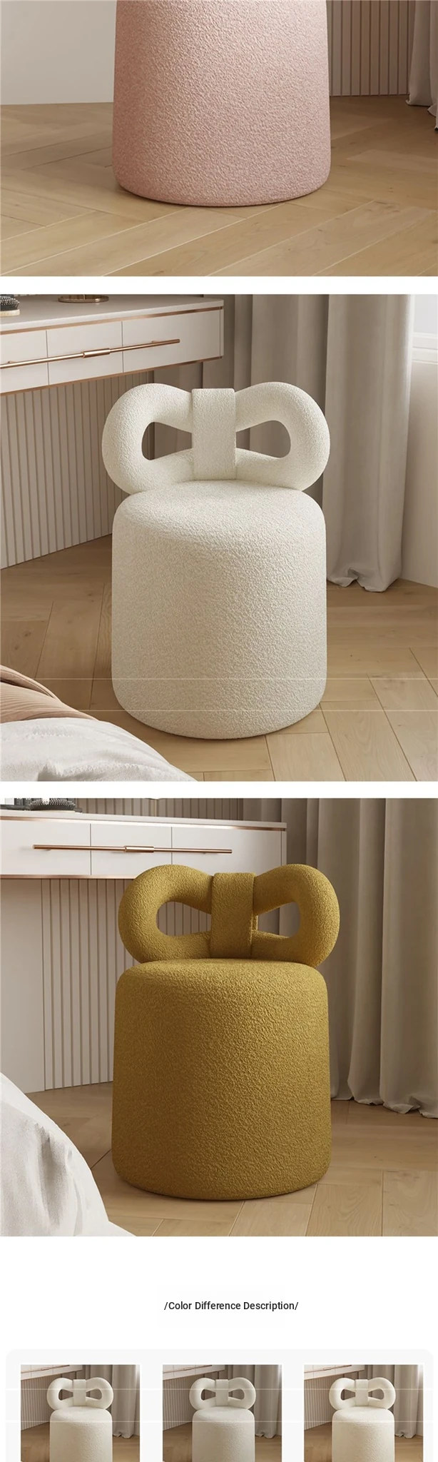 Trendy Bowknot Makeup Chair - Cute Princess Stool for Vanity, Bedroom, and Makeup Sessions - Stylish Backrest Design for Girls - Perfect Round Makeup Seat