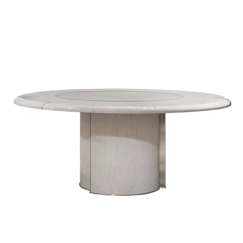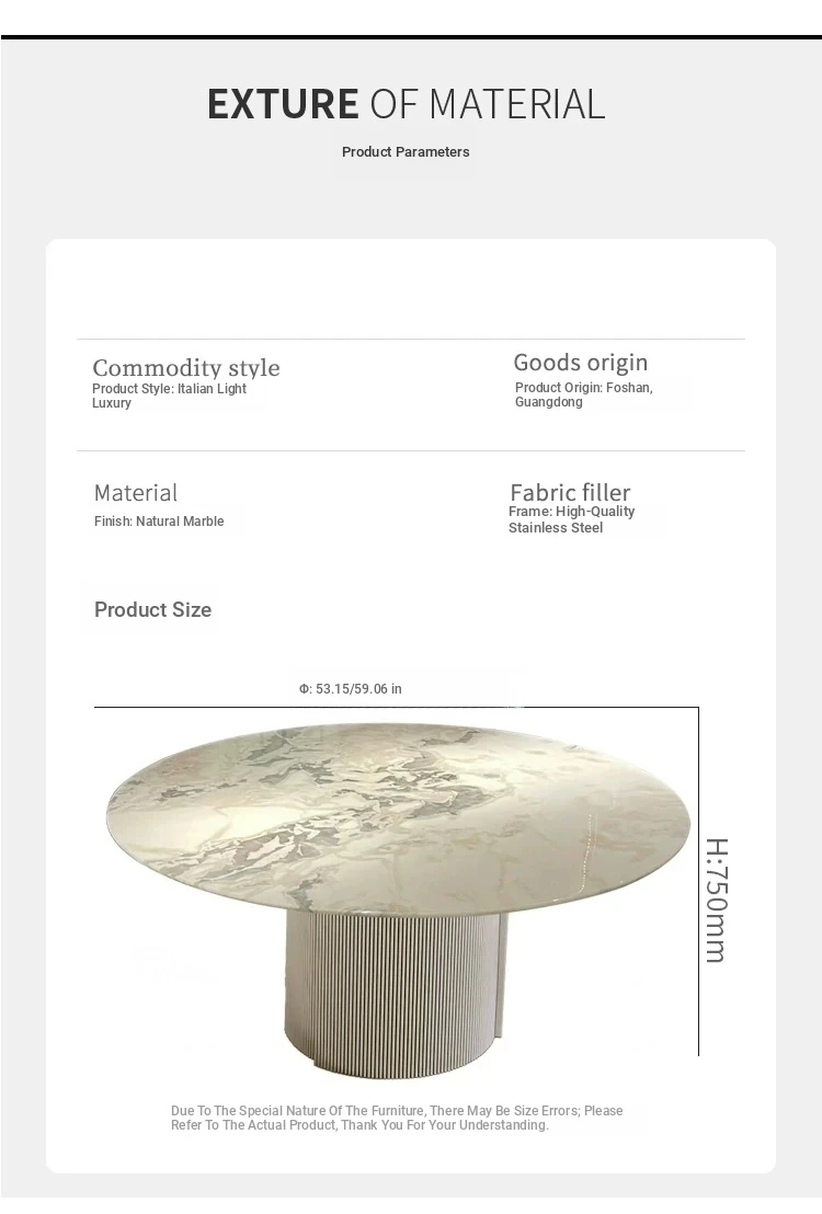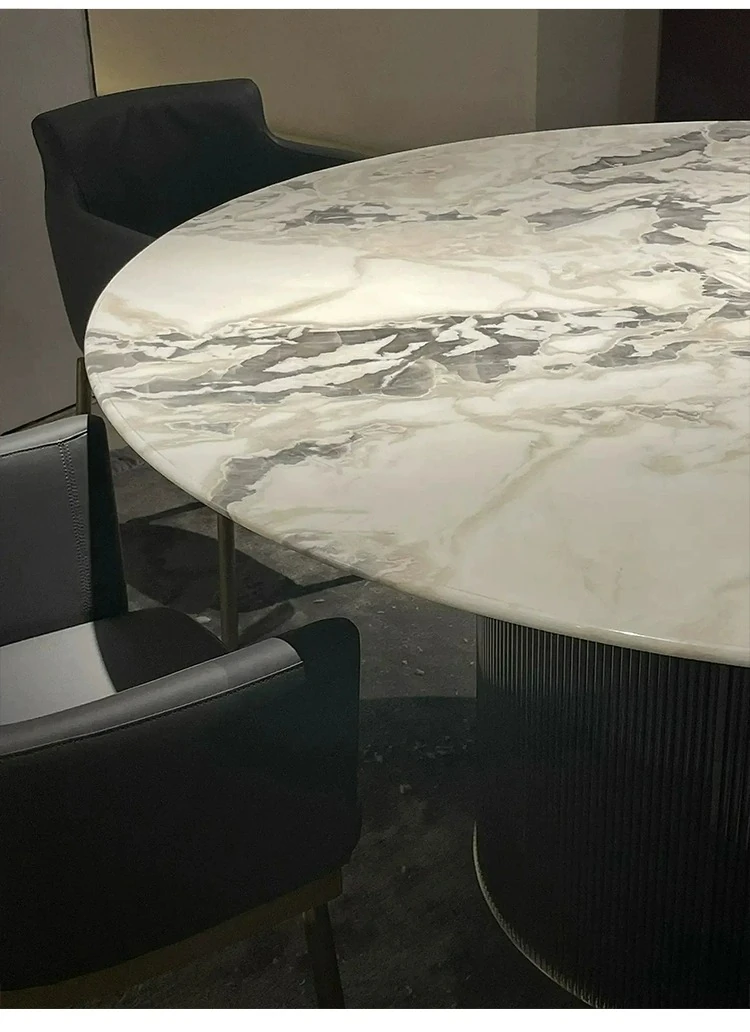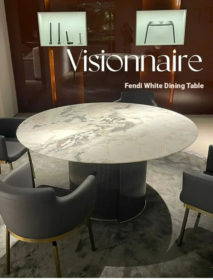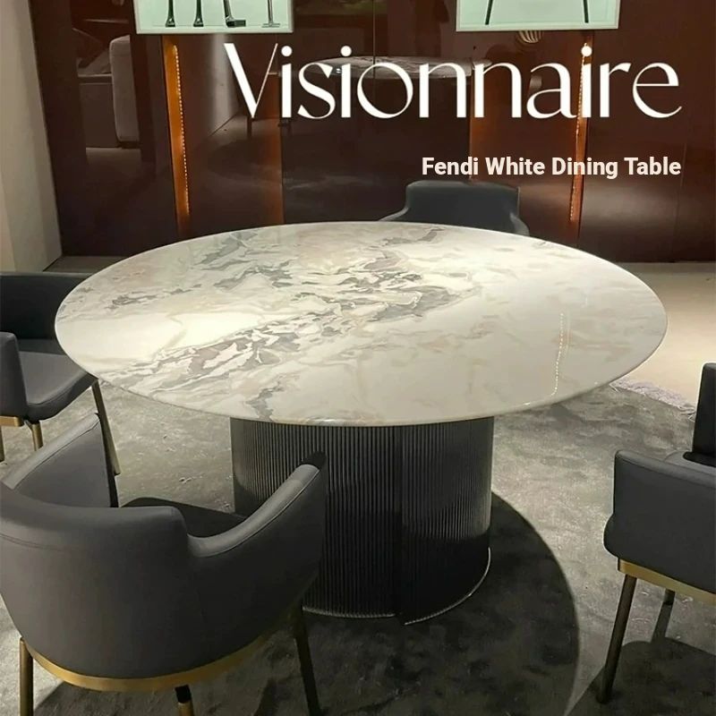 Visionnaire Fendi White Round Marble Dining Table - High-End Luxury Home Round Picasso Stone Dining Table