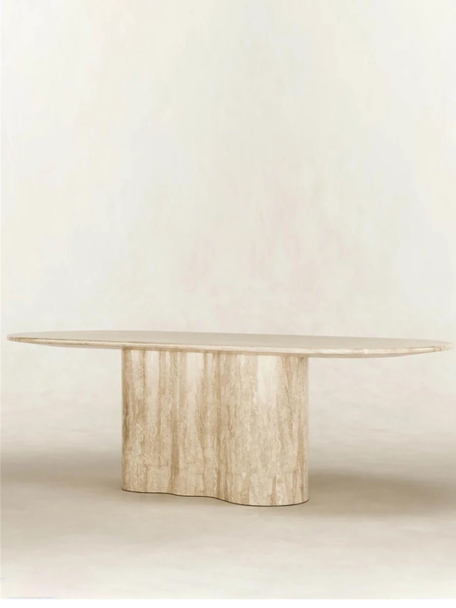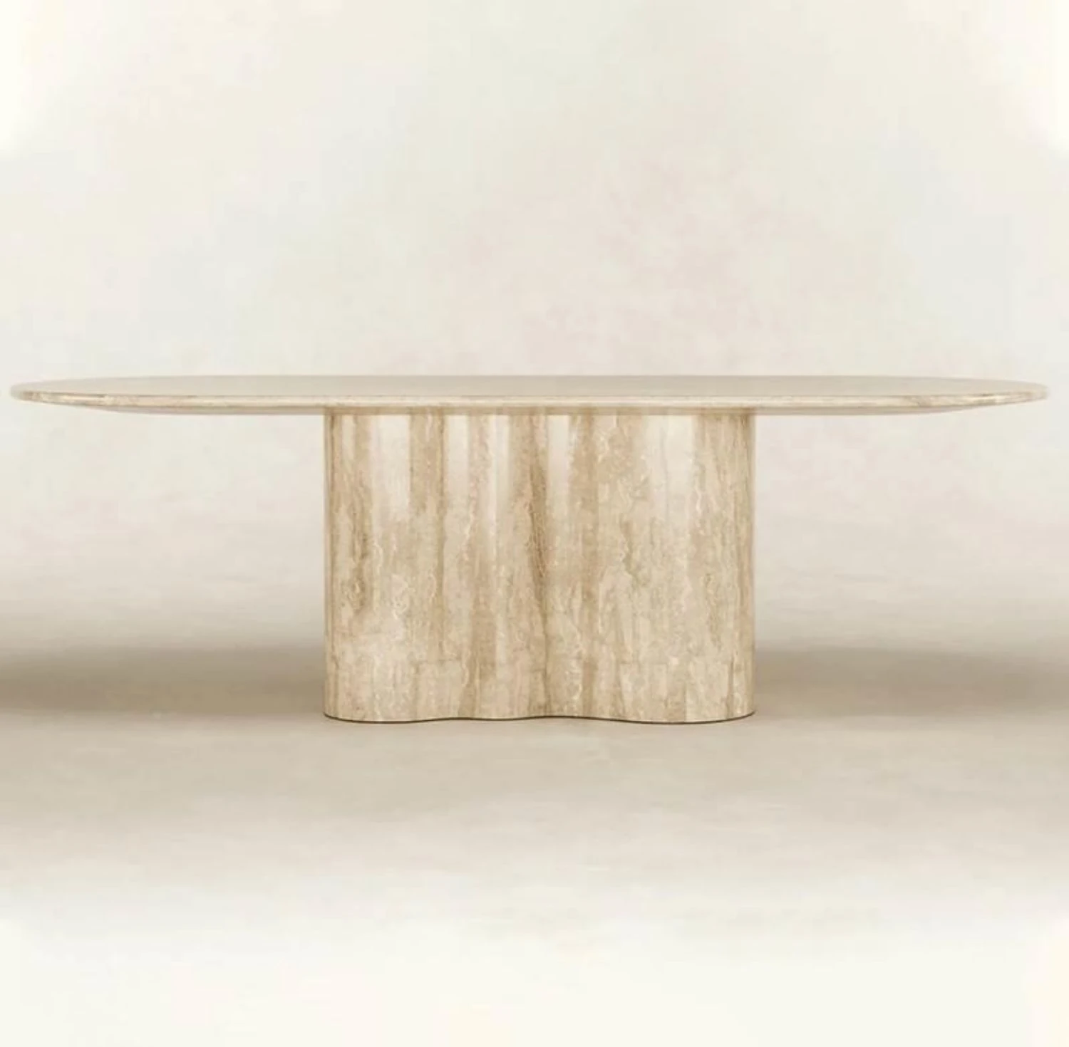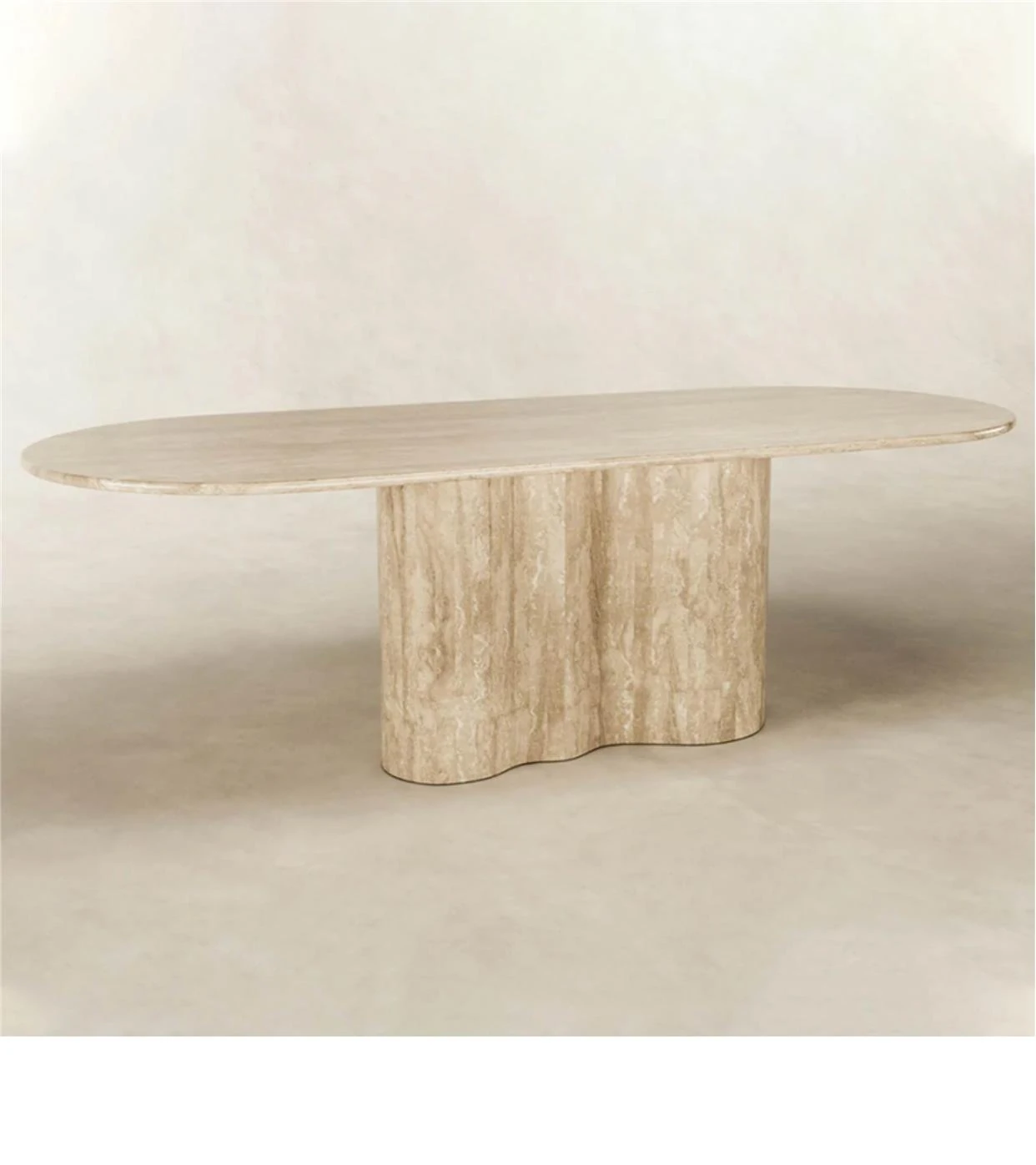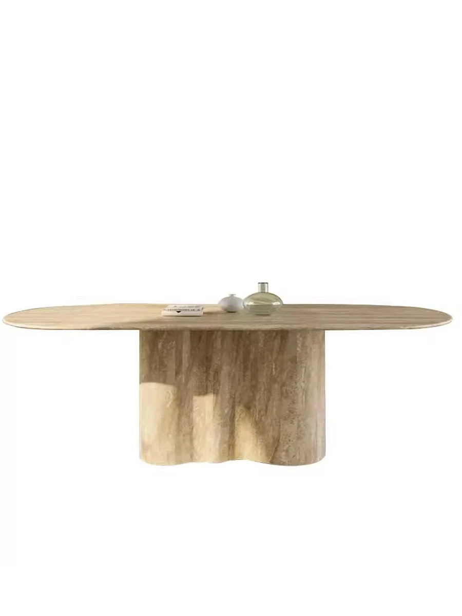 Wabi-Sabi Style Natural Marble Dining Table - Luxurious and Creative Hollow Stone Design for Villas and Home Sample Rooms - Unique Long Table for Elegant Living Spaces
