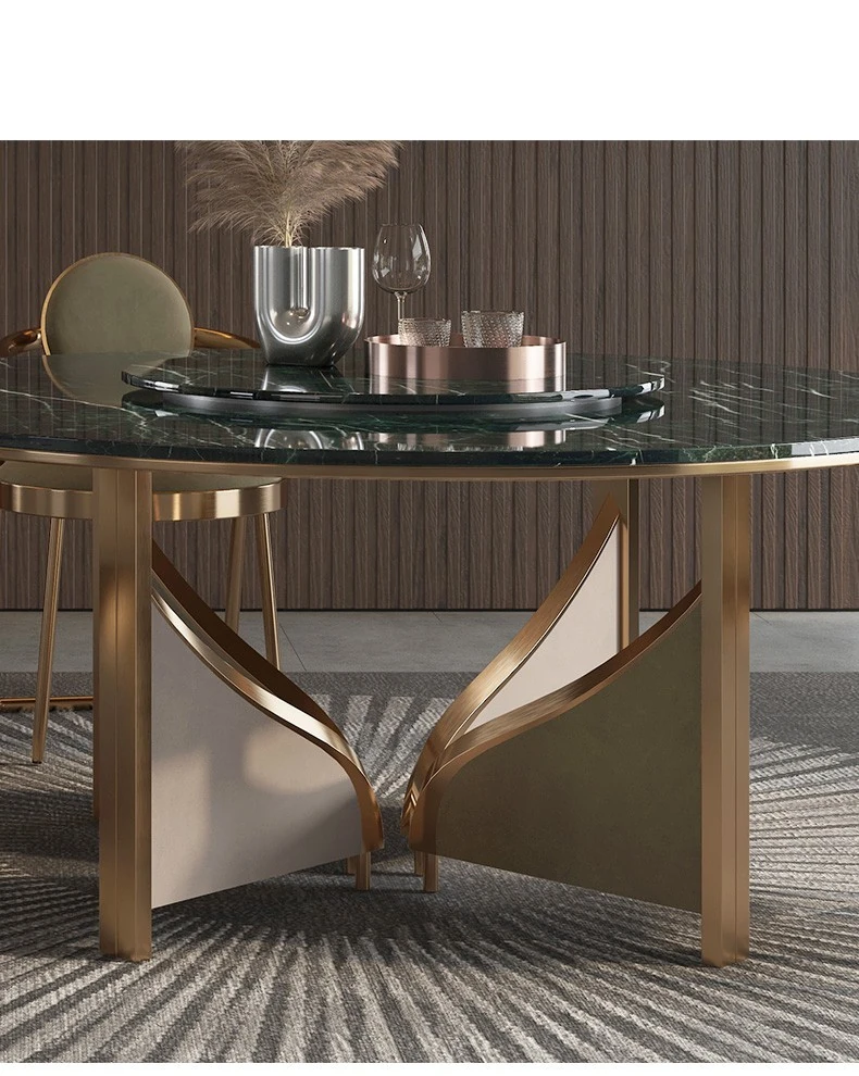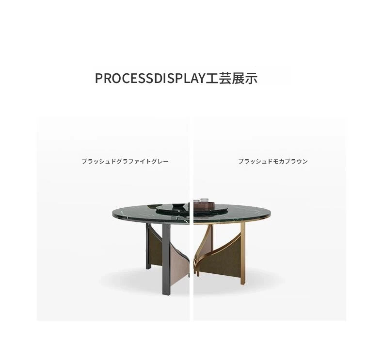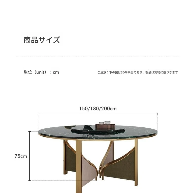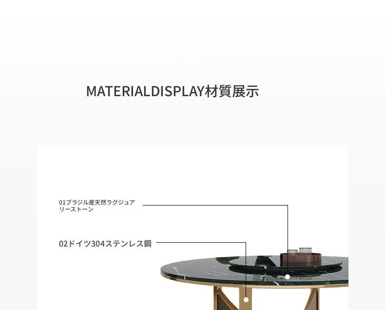 デザイナー款-1.8mダイニングテーブル+1.1m回転台【ブラジル輸入天然ラグジュアリーストーン】