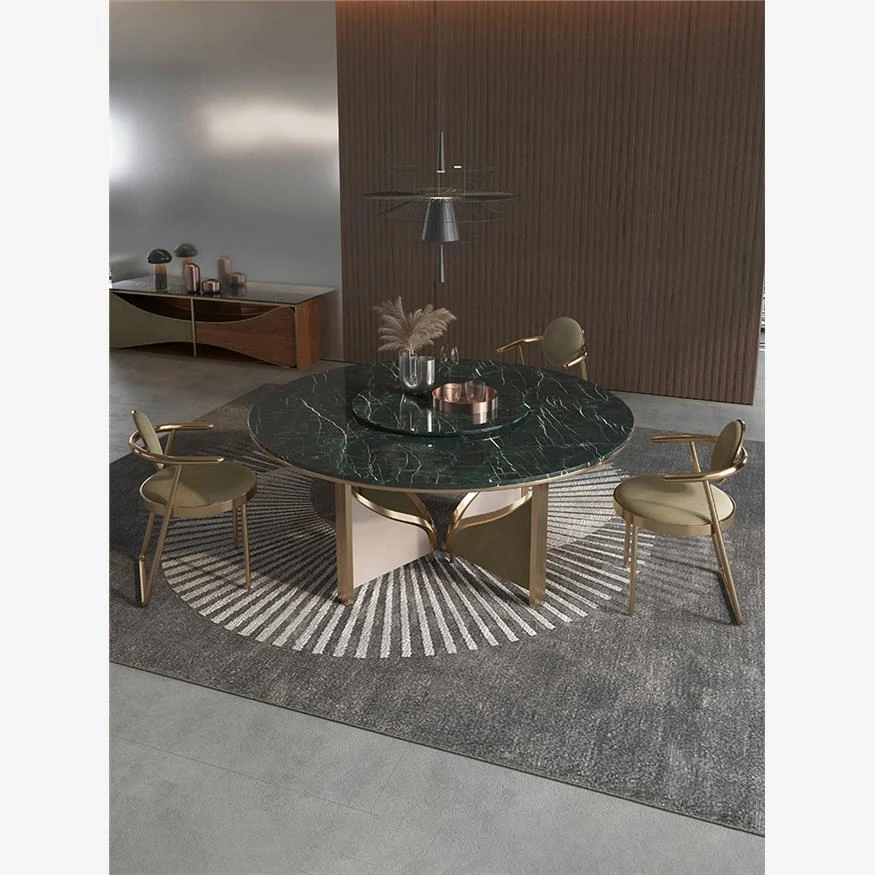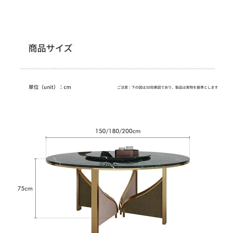 デザイナータイプ-1.8mダイニングテーブル+1.1mターンテーブル【ブラジル輸入天然ラグジュアリー石】