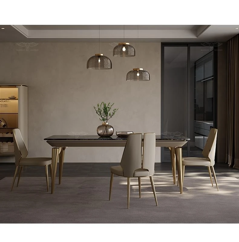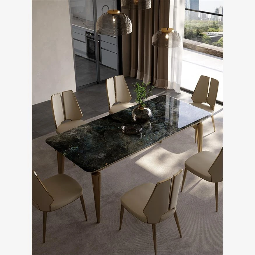 ダイニングテーブル/1.8M+H132超ファイバー皮製ダイニングチェア*6/サファイア天然ラグジュアリー石/シャンパンゴールド