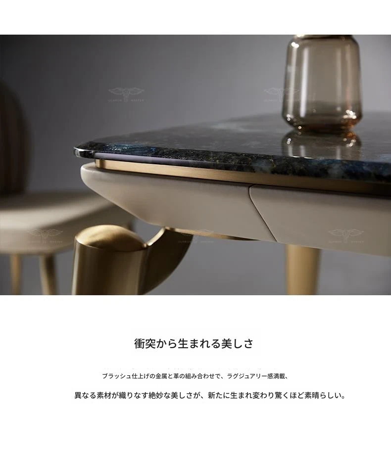 ダイニングテーブル/1.8M/サファイア天然ラグジュアリー石/シャンパンゴールド