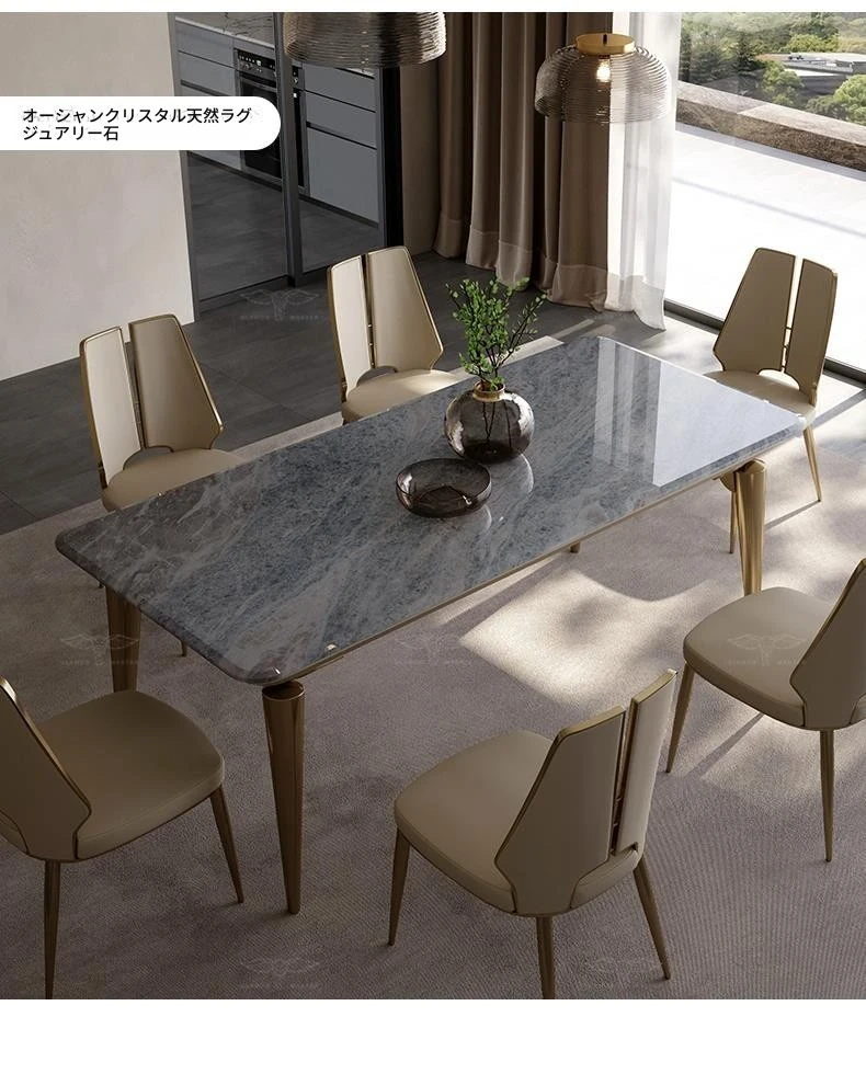 ダイニングテーブル/1.8M+H132超ファイバー皮製ダイニングチェア*6/オーシャンクリスタル天然ラグジュアリー石/シャンパンゴールド