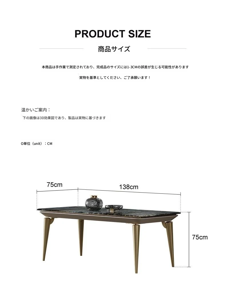 ダイニングテーブル/1.38M/サファイア天然ラグジュアリー石/シャンパンゴールド