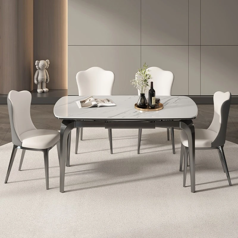 1.3天然ミクロ石折りたたみテーブル+猫爪皮製ダイニングチェア*4